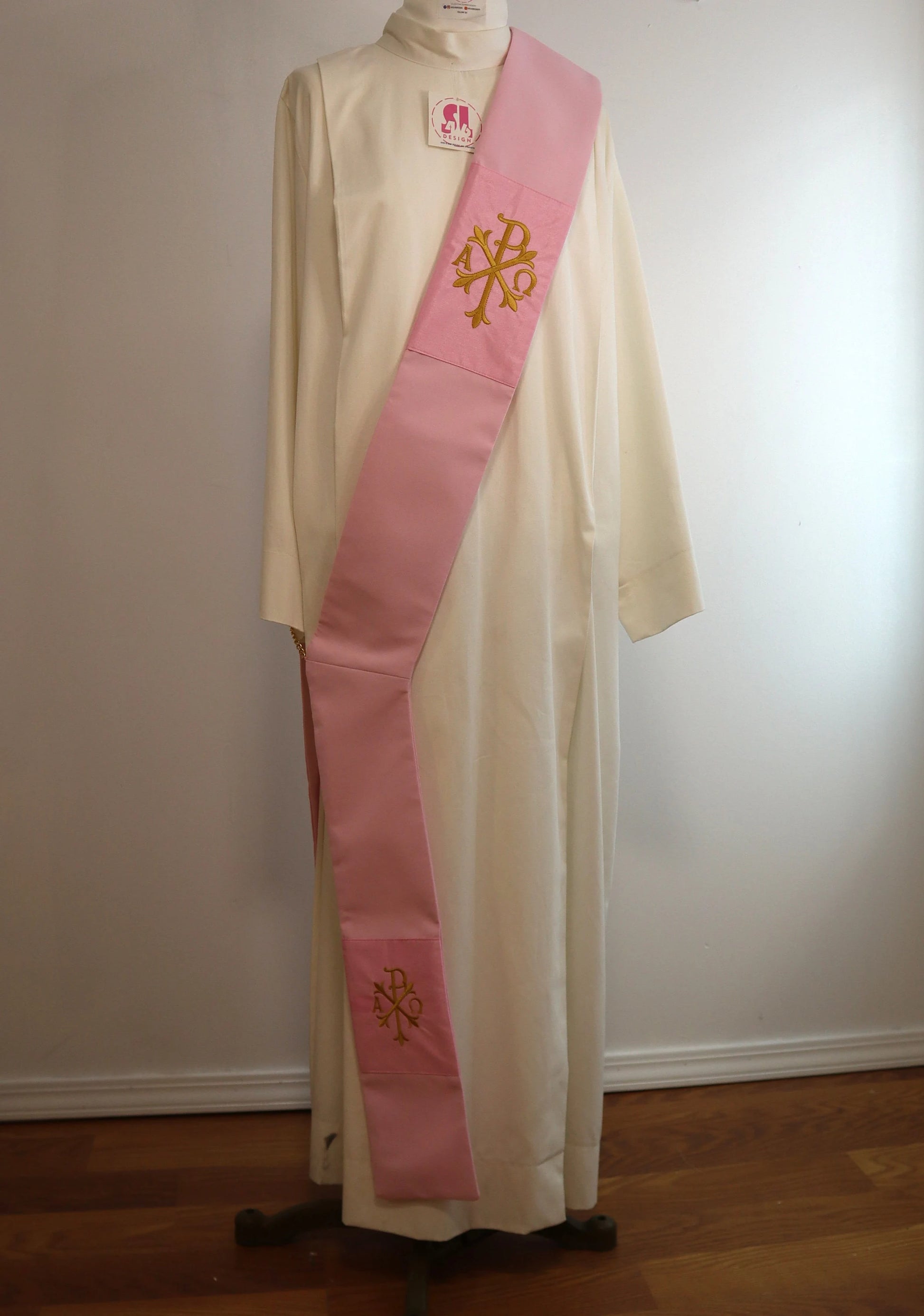 our stoles come with 3 embroidered designs that can be customized upon request.