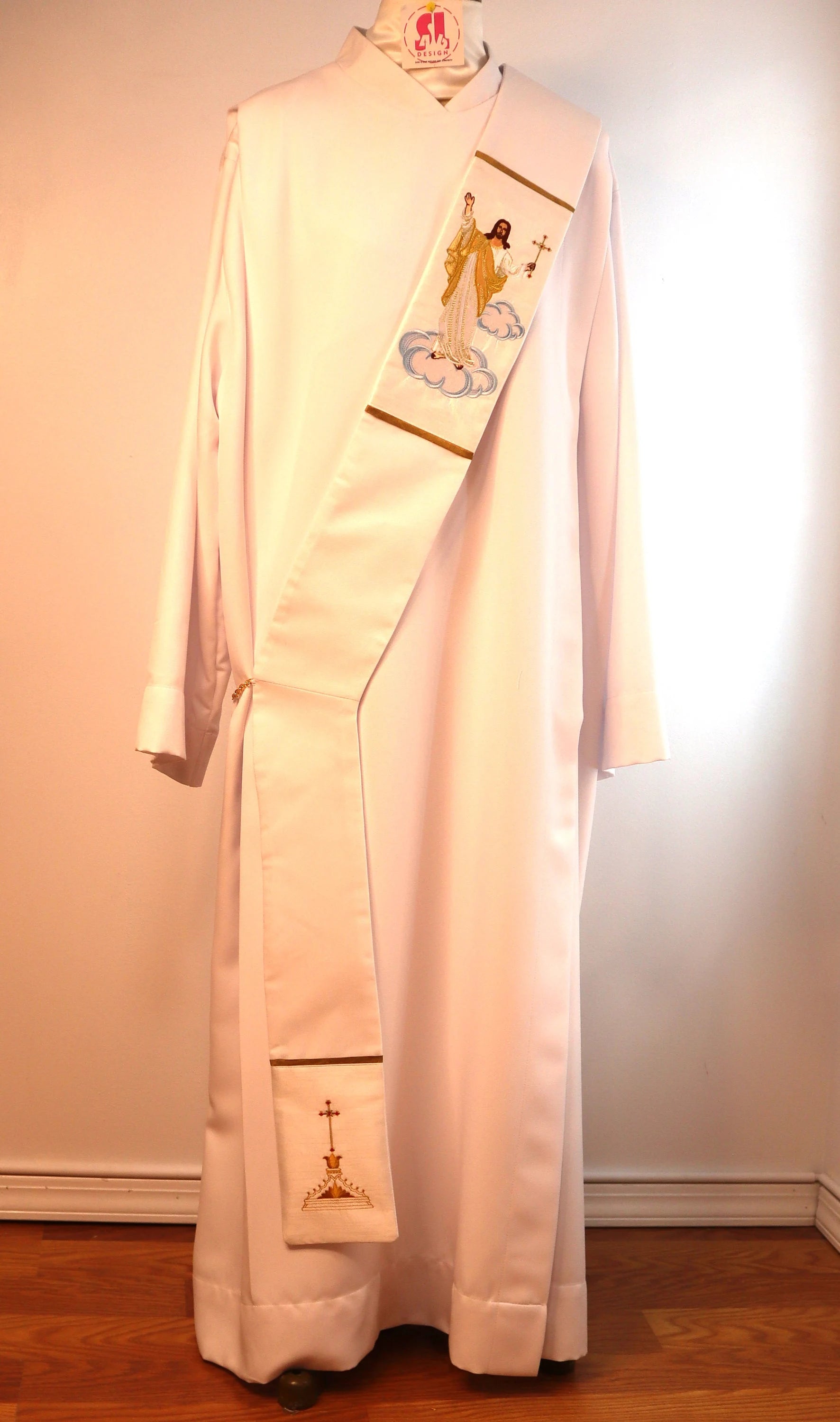 our stoles come with 3 embroidered designs that can be customized upon request.
