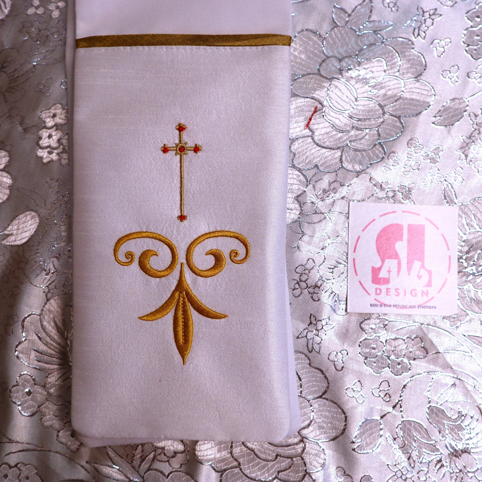 our stoles come with 3 embroidered designs that can be customized upon request.