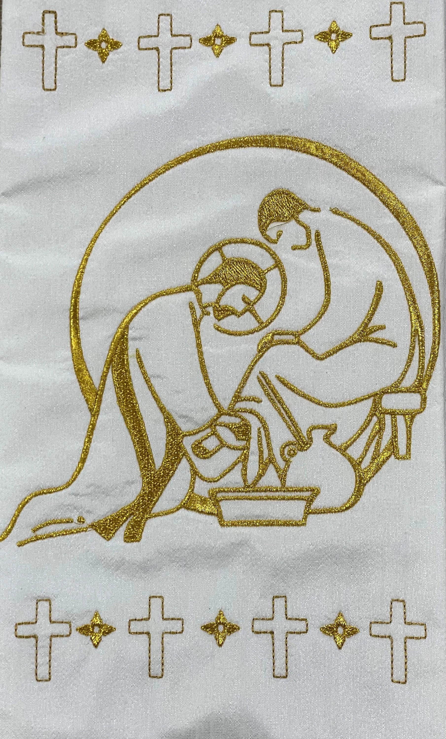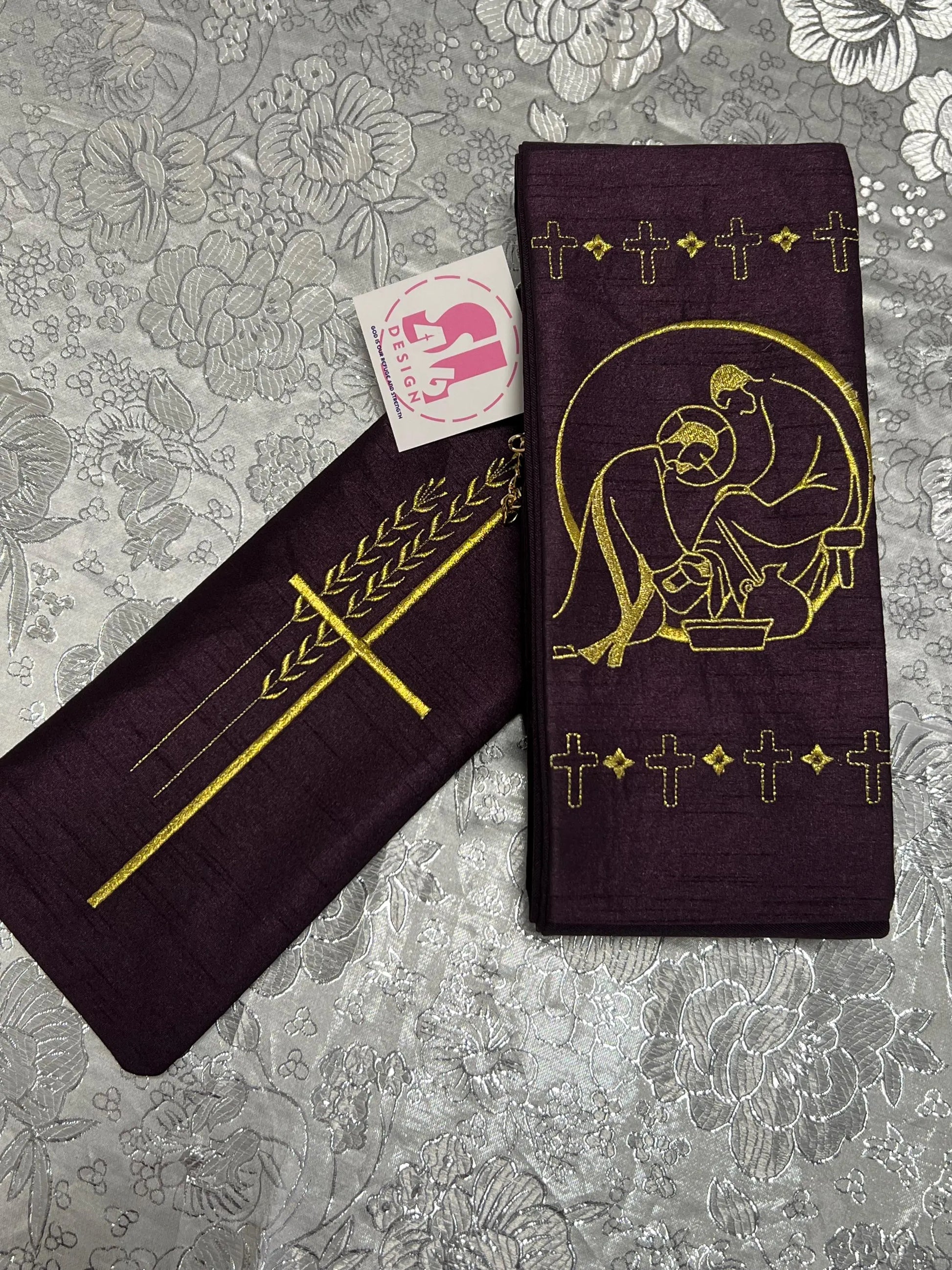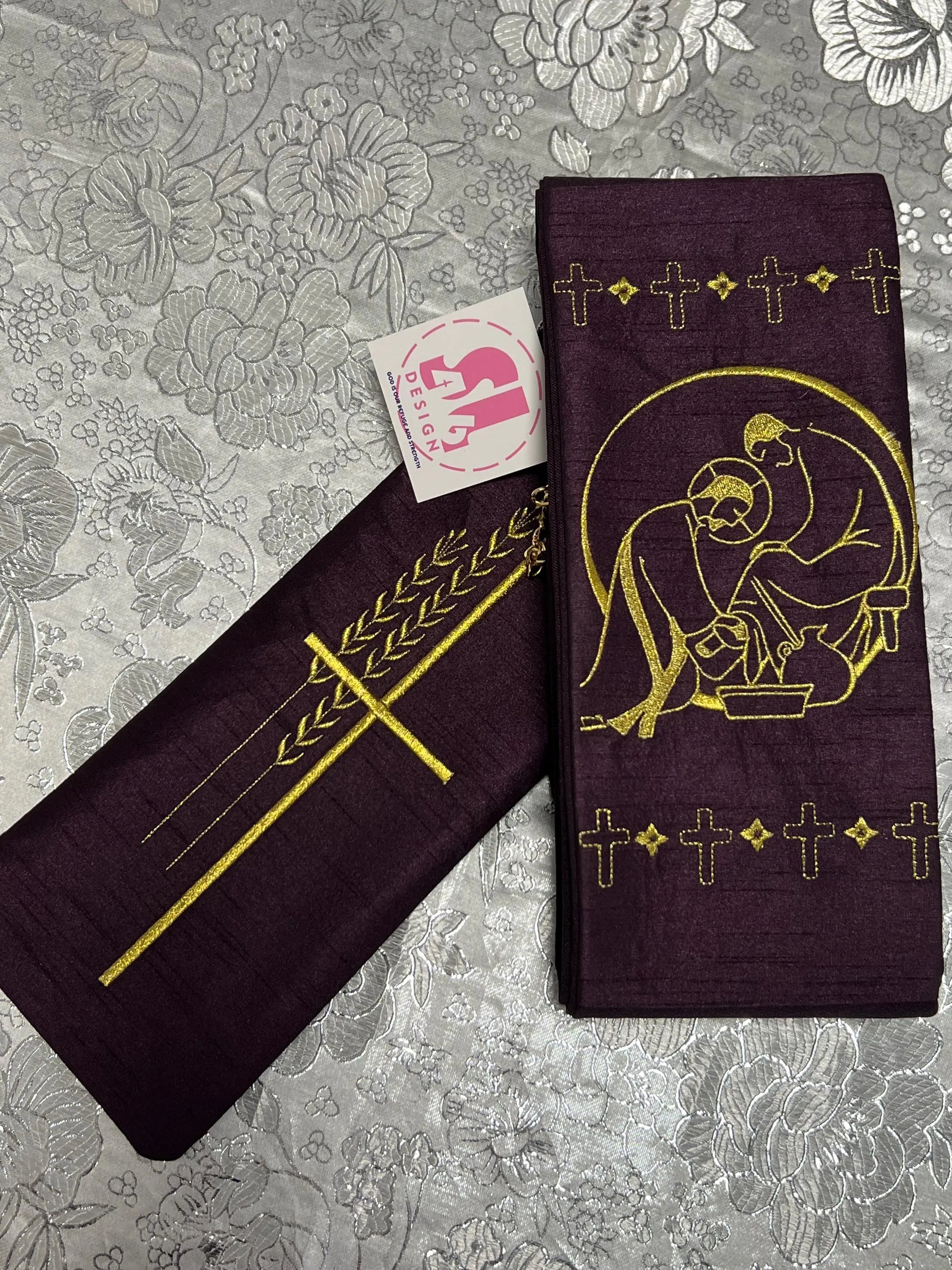 our stoles come with 3 embroidered designs that can be customized upon request.
