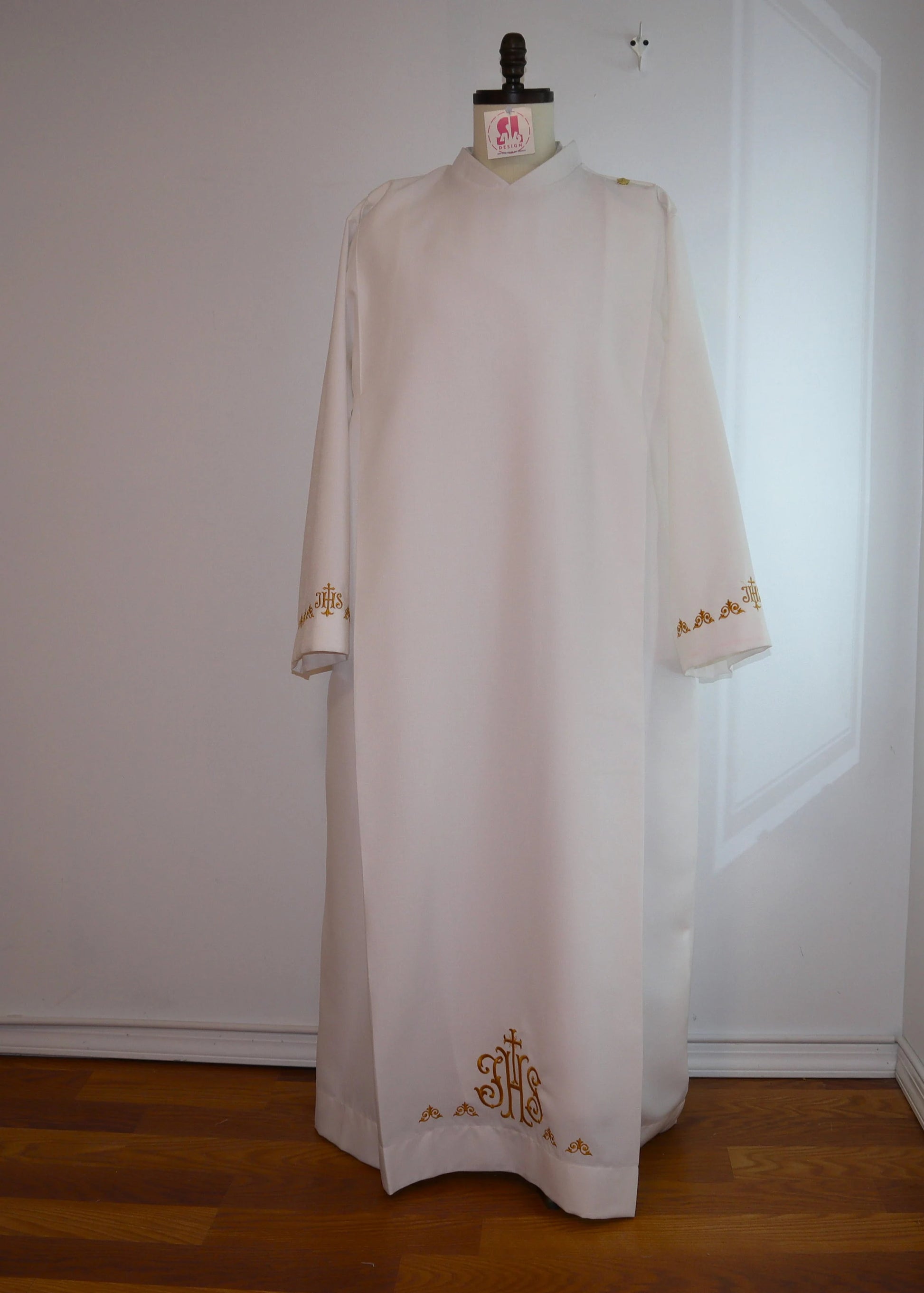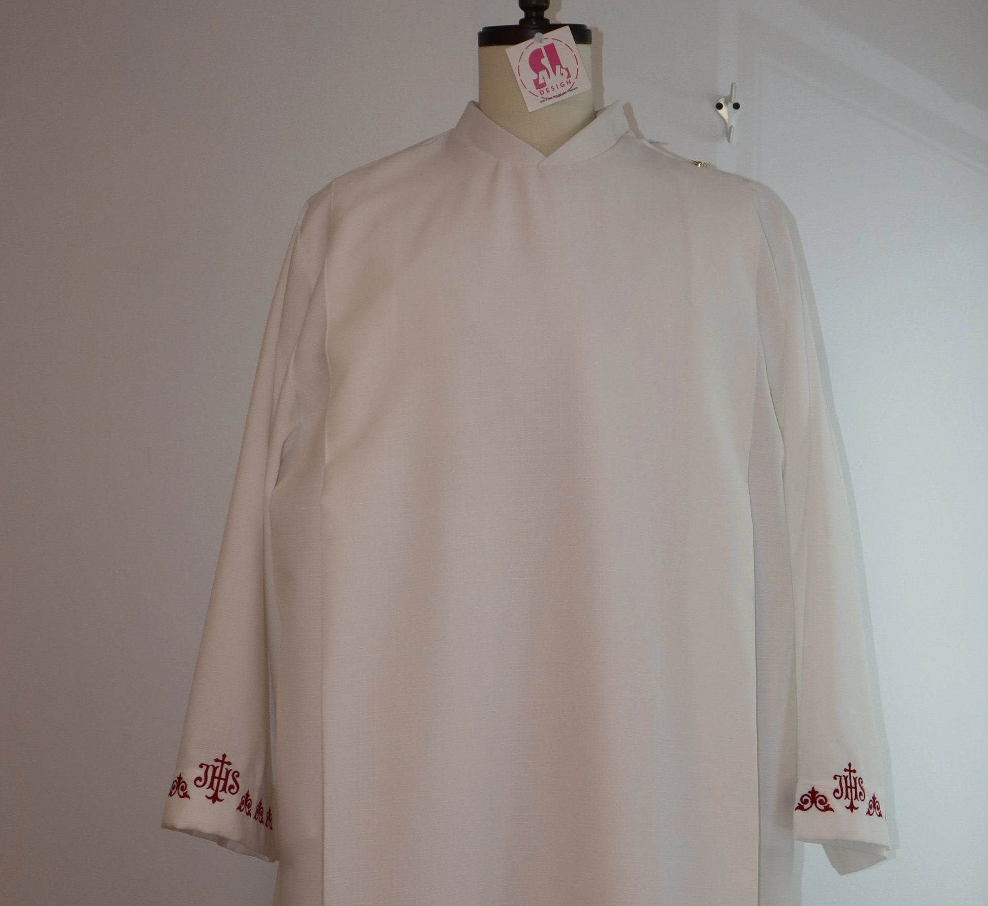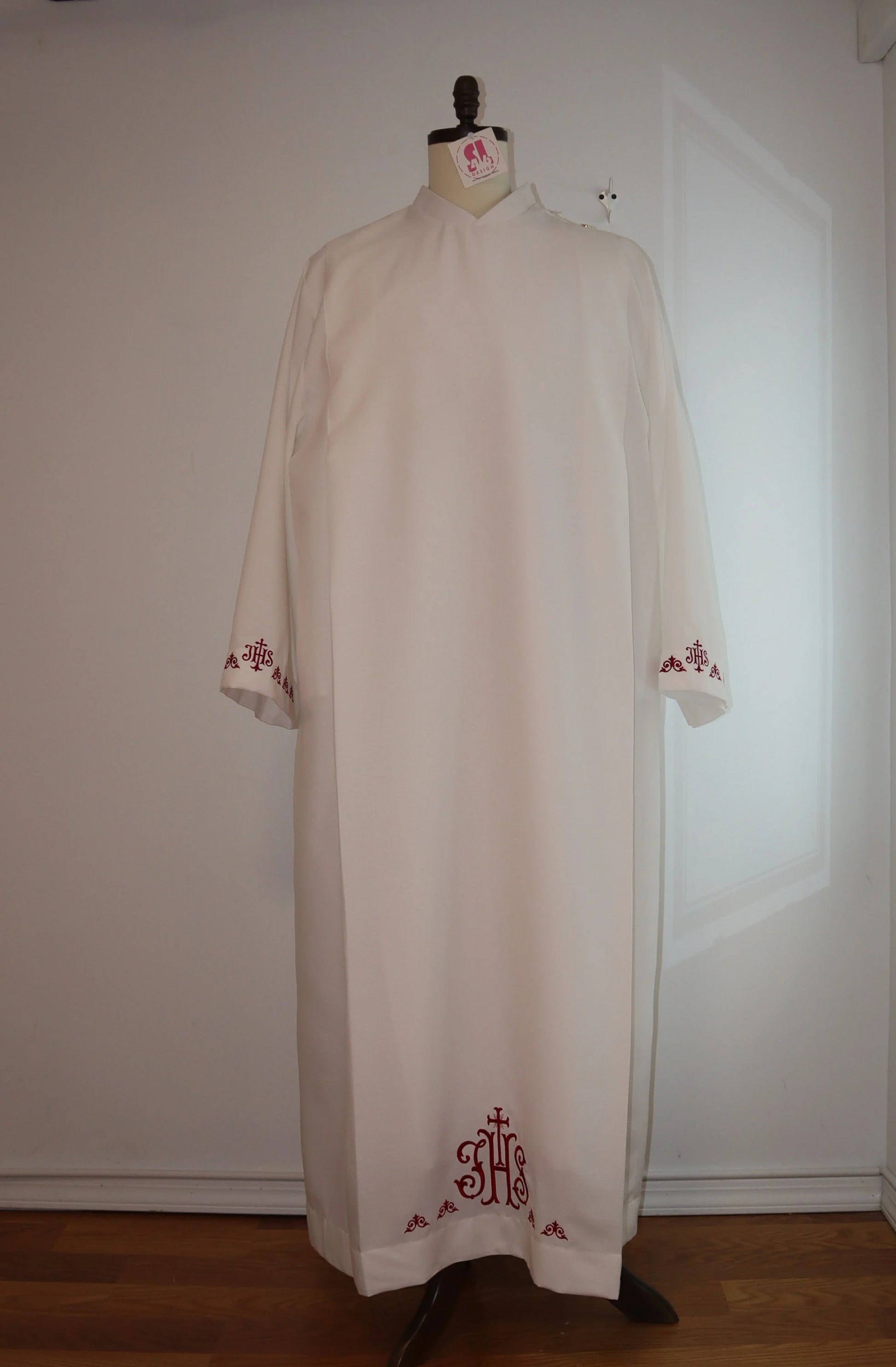 Custom made to fit. - there is embroidery designs on the front on the bottom front and back. And both sleeves. All embroidery are on white color to make them easy to wear all year long. But they can be changed if requested.