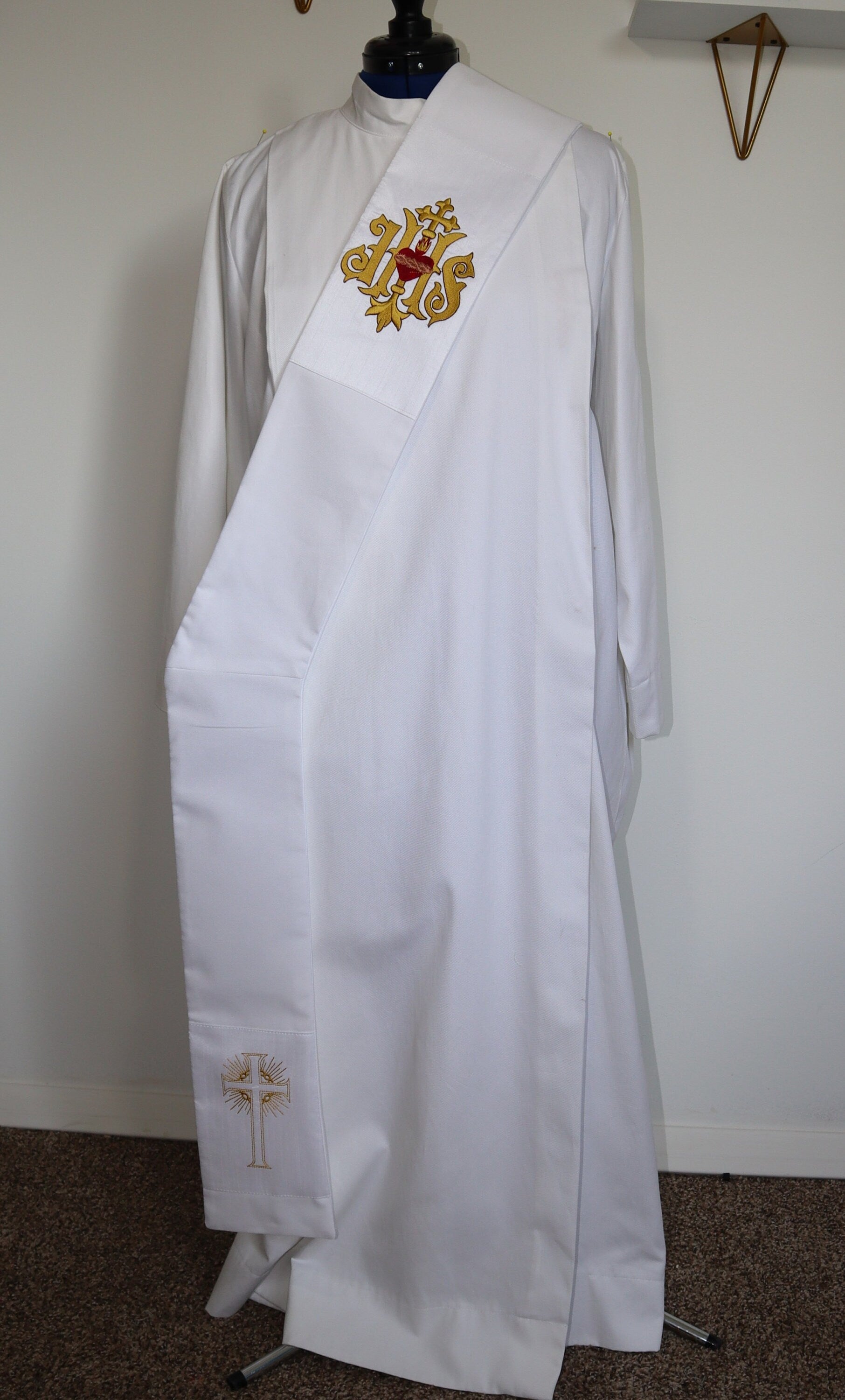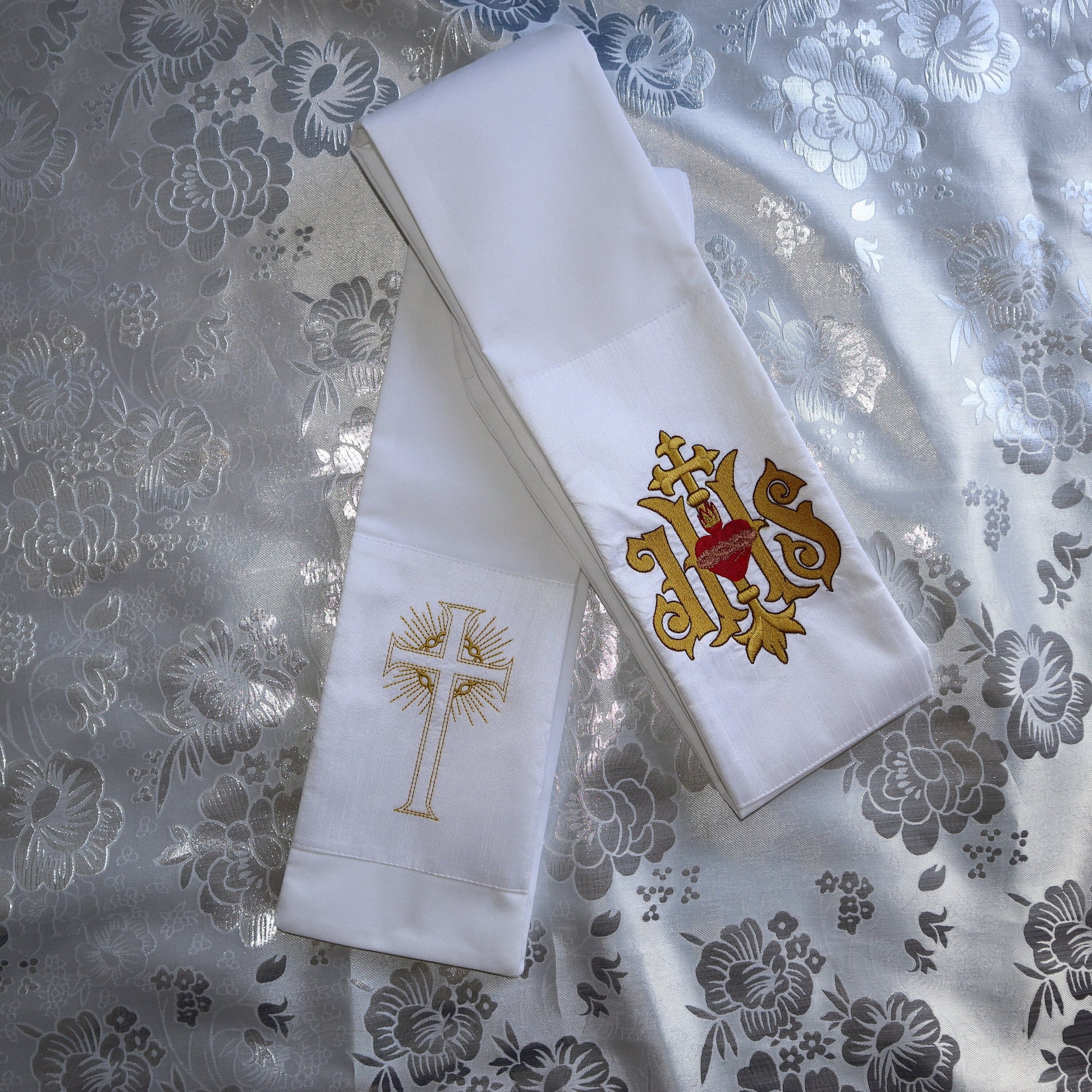 our stoles come with 3 embroidered designs that can be customized upon request.