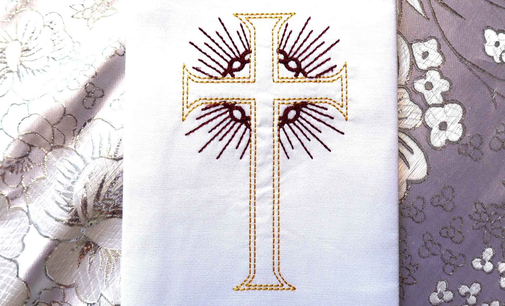 each side of the stole is 54 inches tall and 5 inches wide ( we can customize).