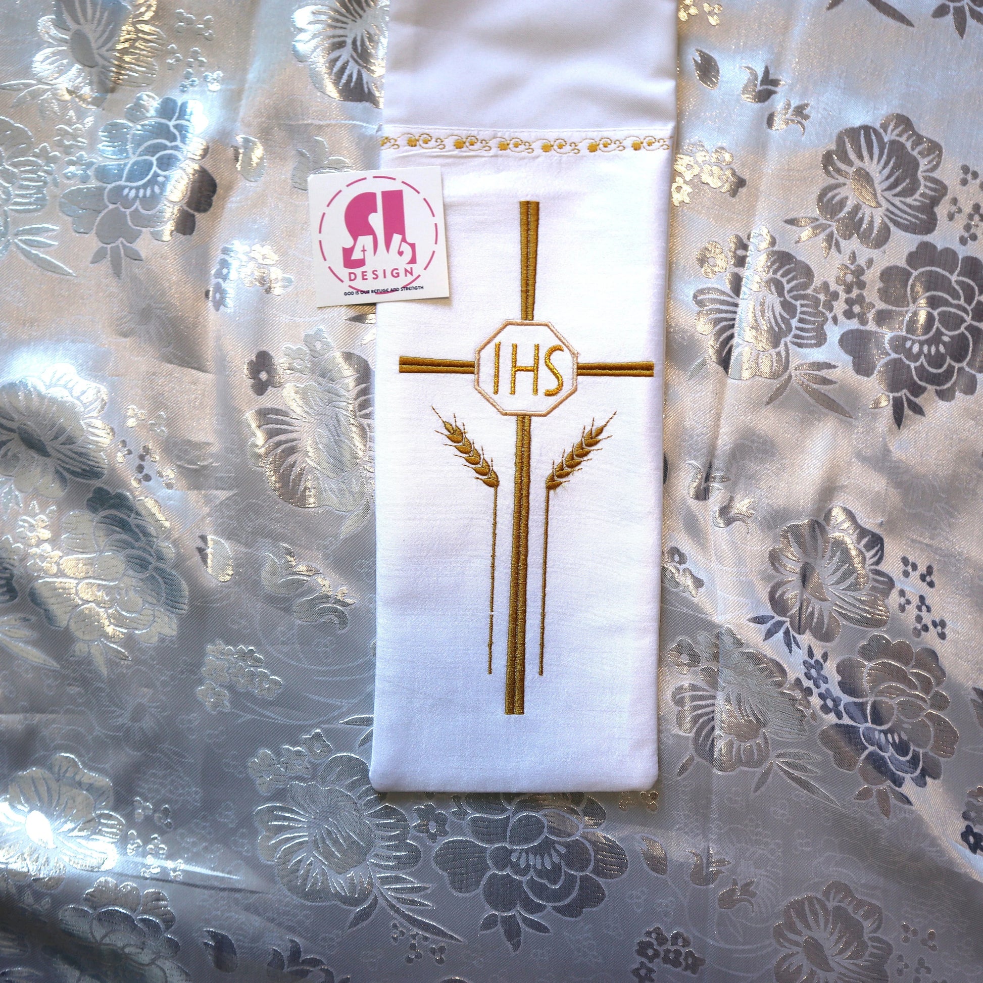 our stoles come with 3 embroidered designs that can be customized upon request.