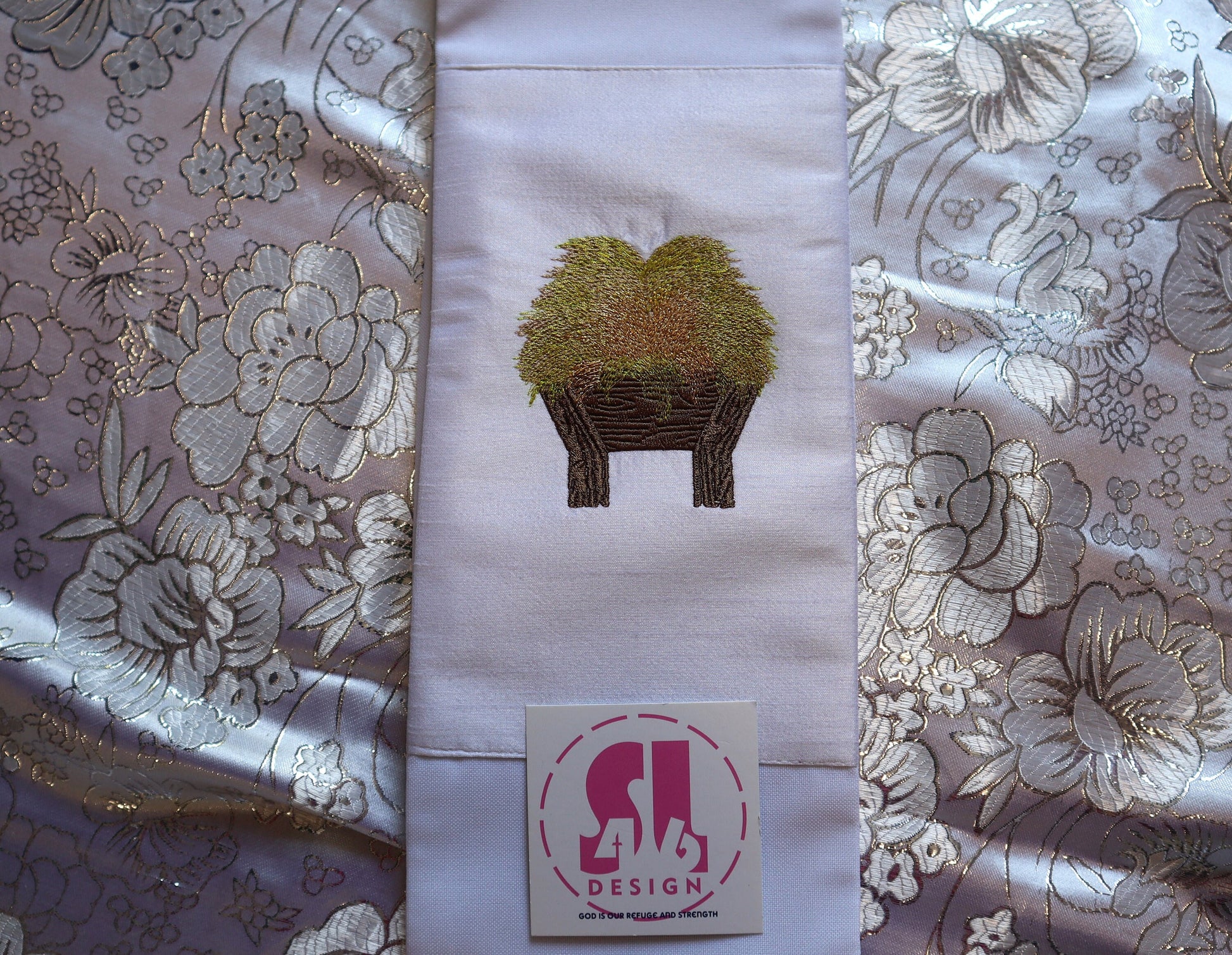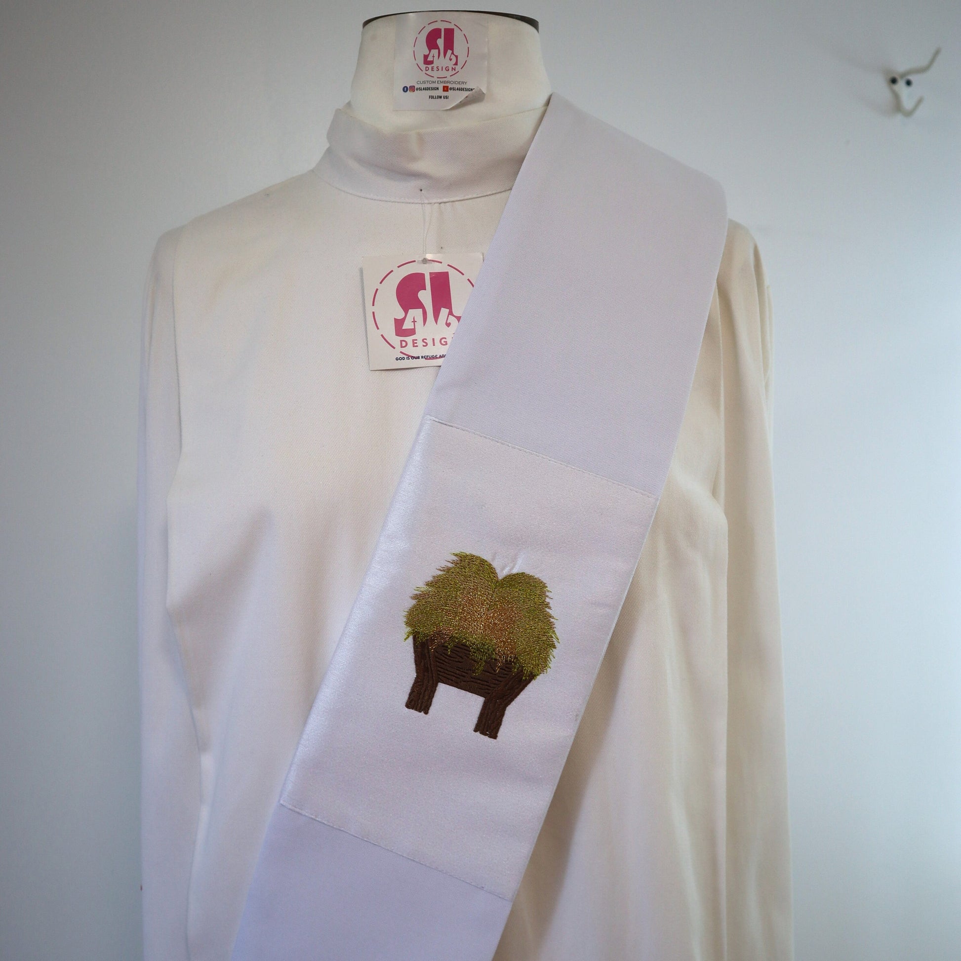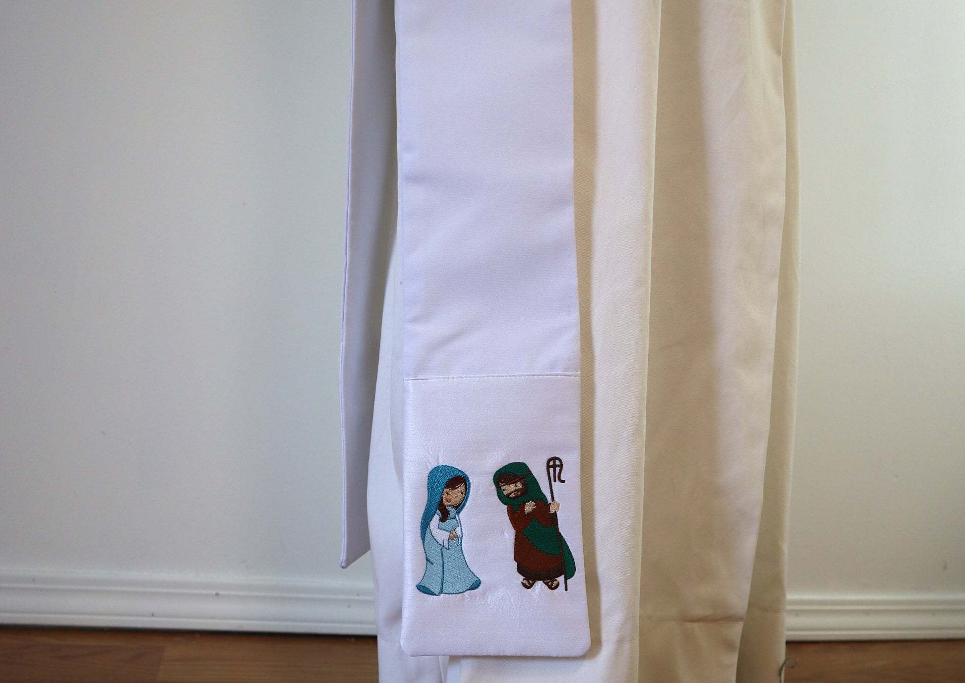 our stoles come with 3 embroidered designs that can be customized upon request.