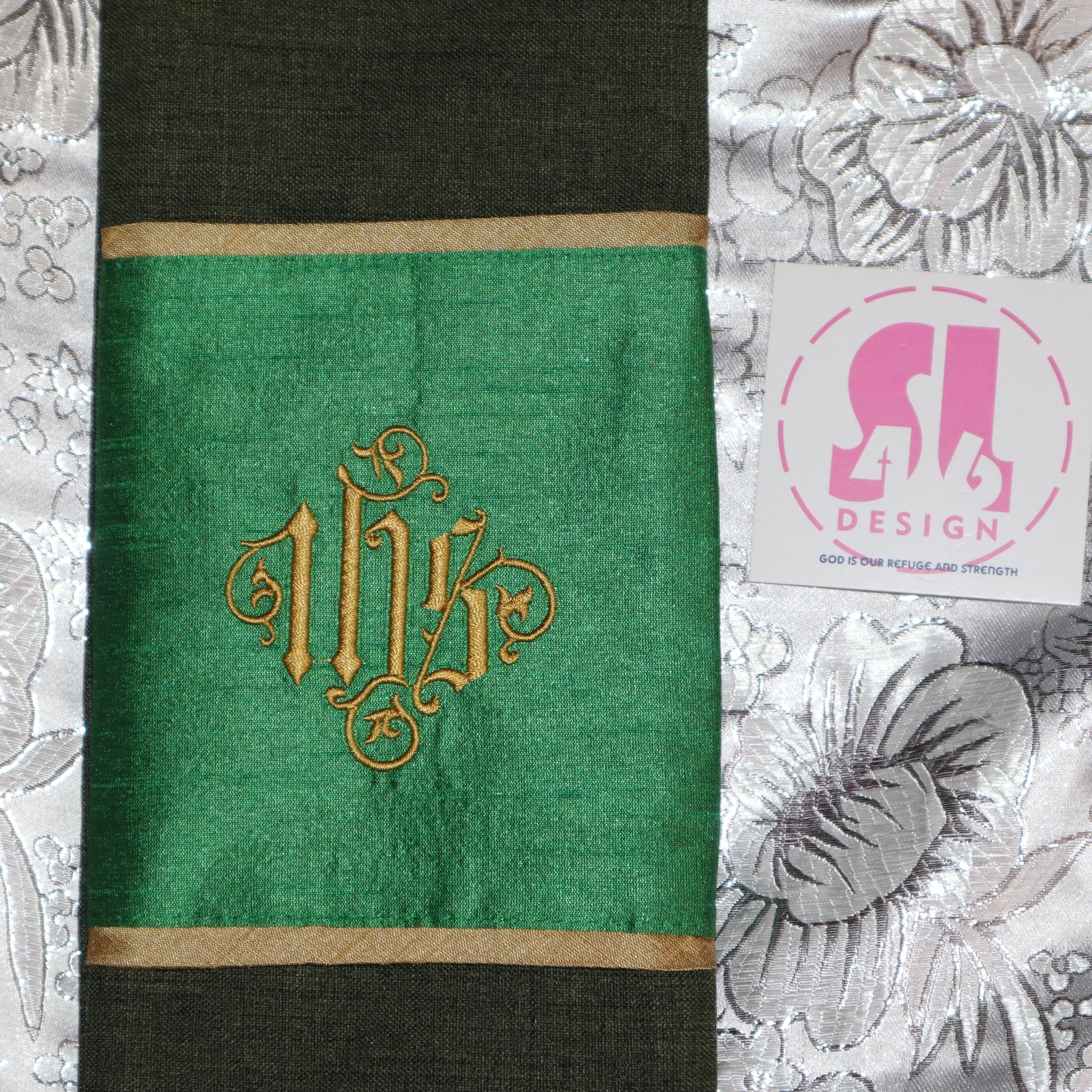 our stoles come with 3 embroidered designs that can be customized upon request.