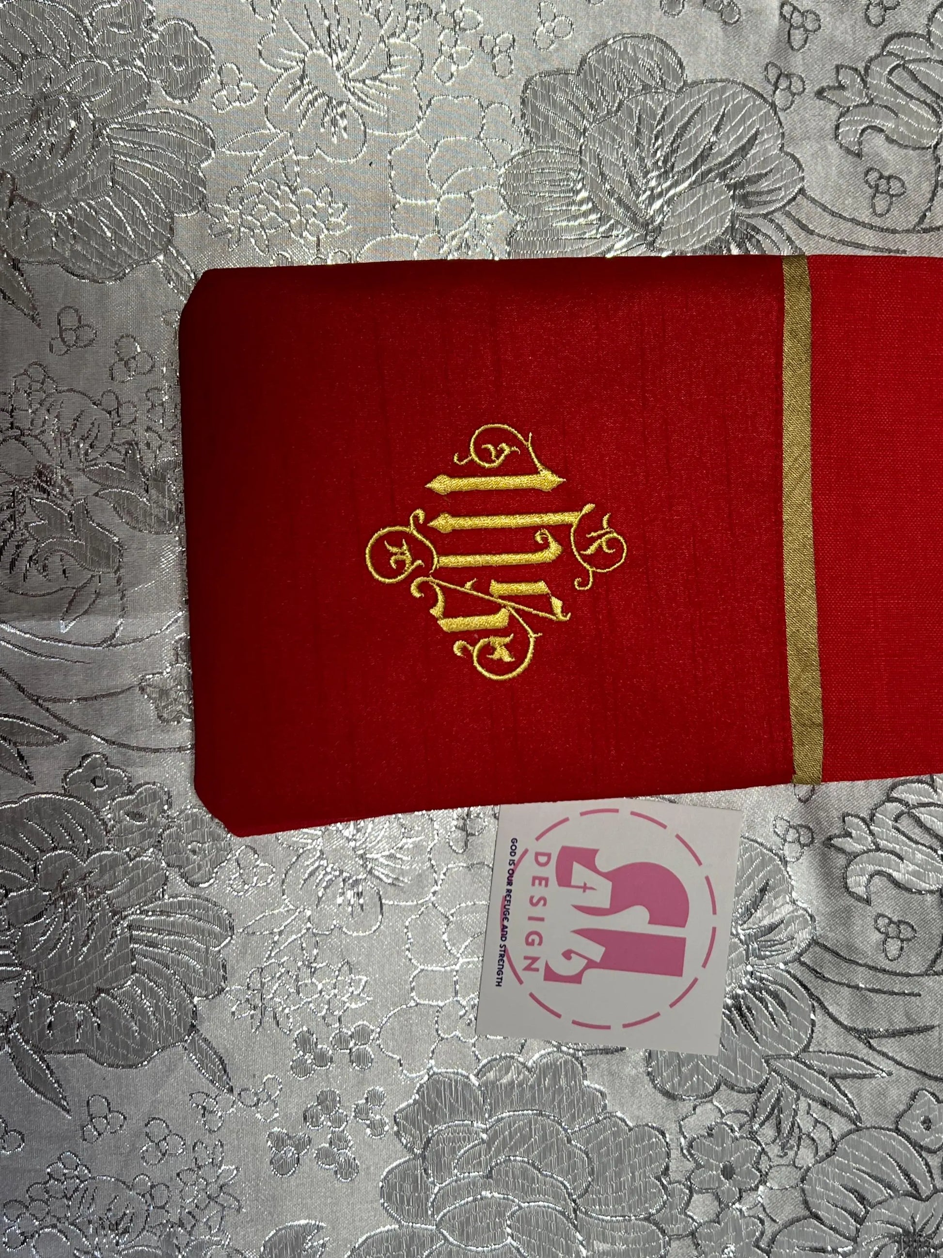 our stoles come with 3 embroidered designs that can be customized upon request.