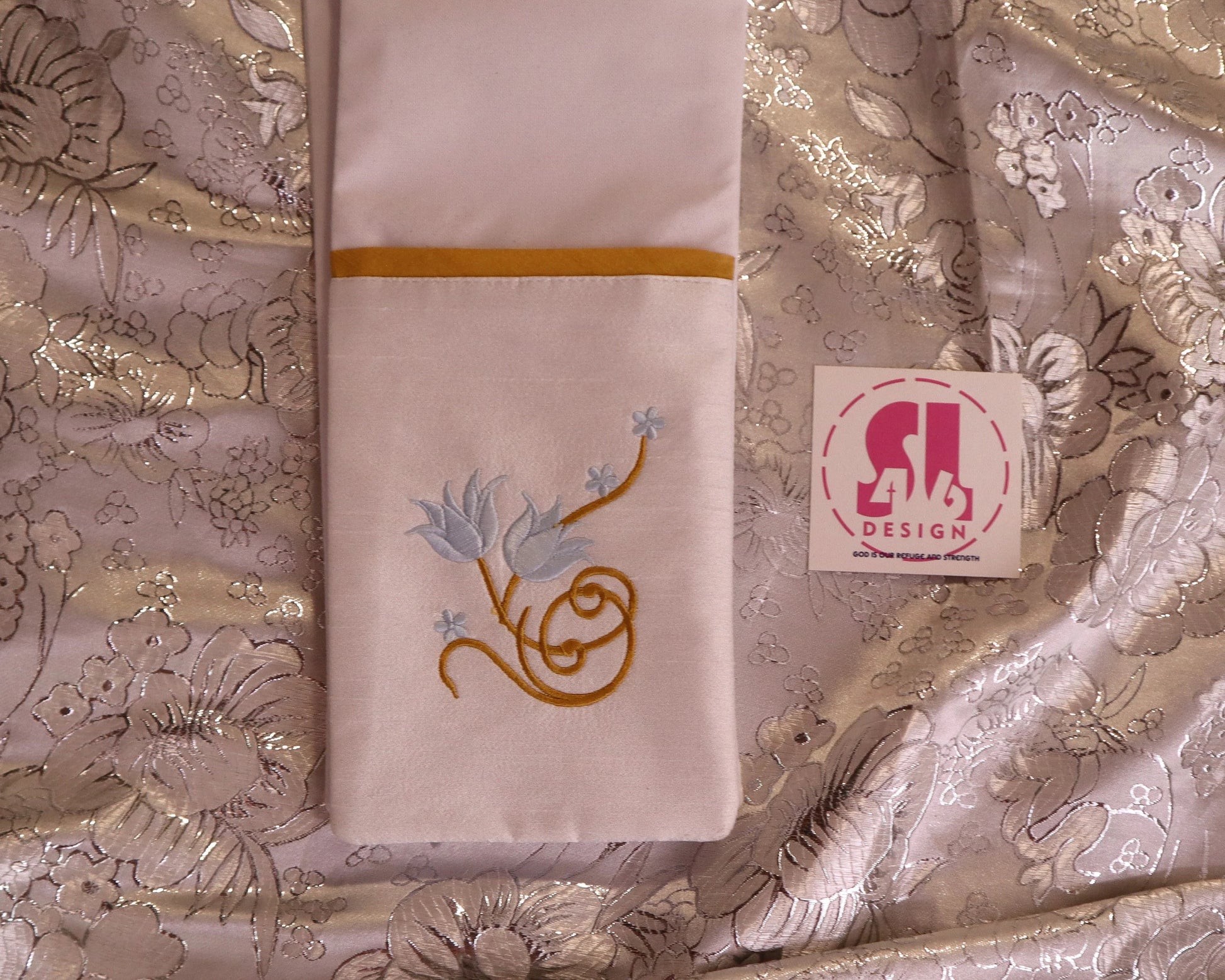 Materials: high quality cotton blend and designs are embroidered on a accent fabric to give the piece and elegant touch.