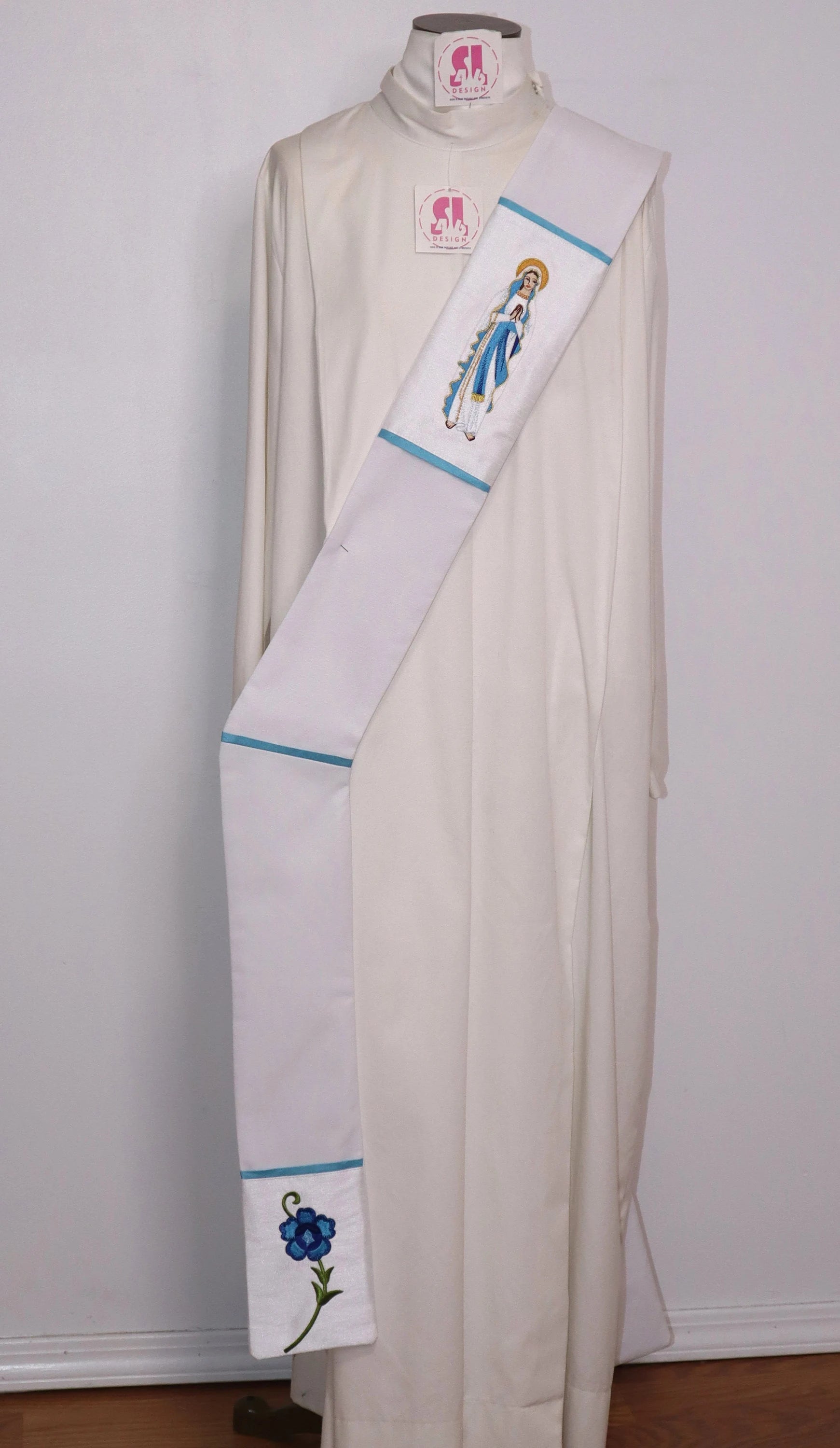 Virgin Our Lady of Lourdes embroidered 12" long  dalmatic