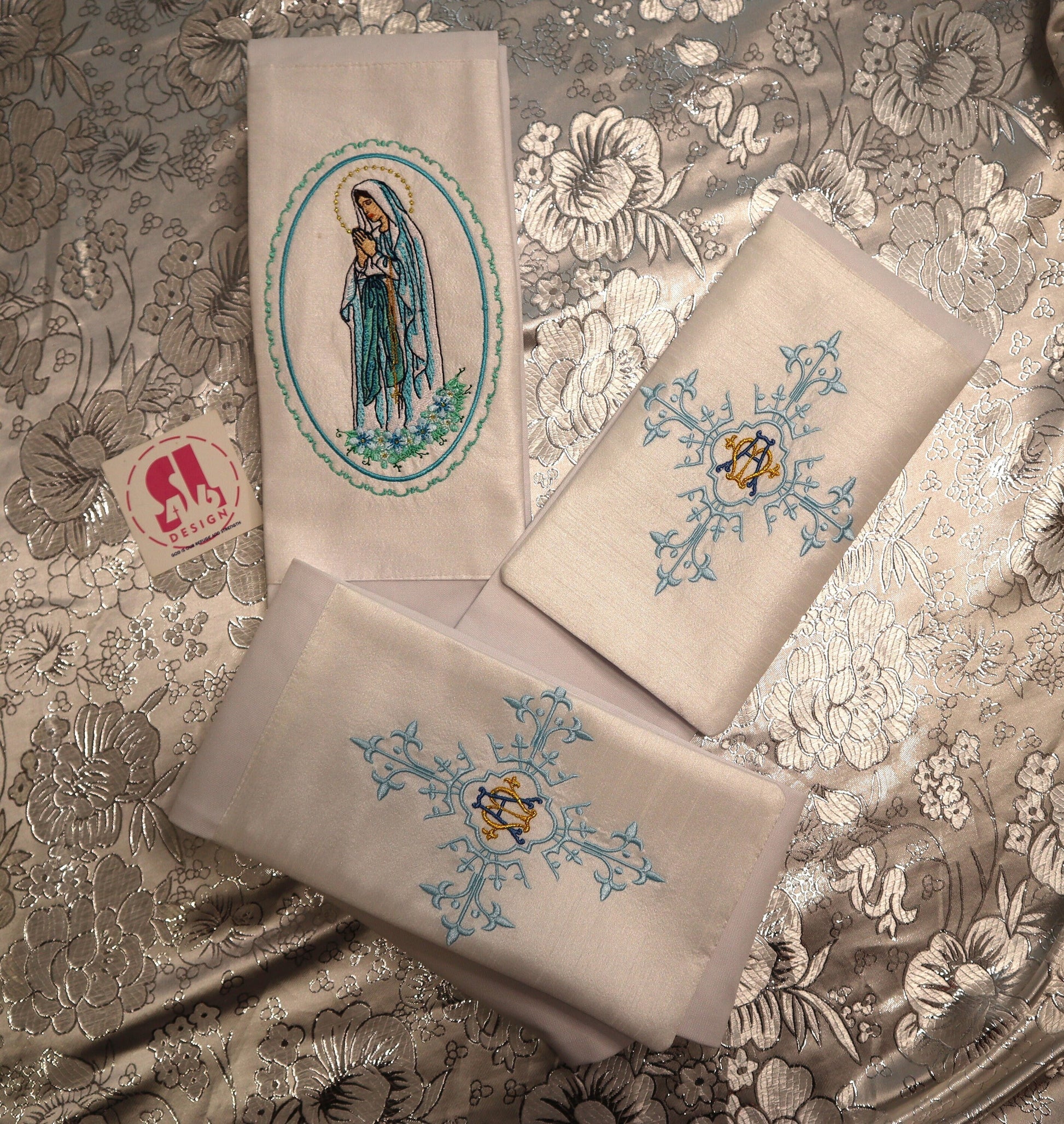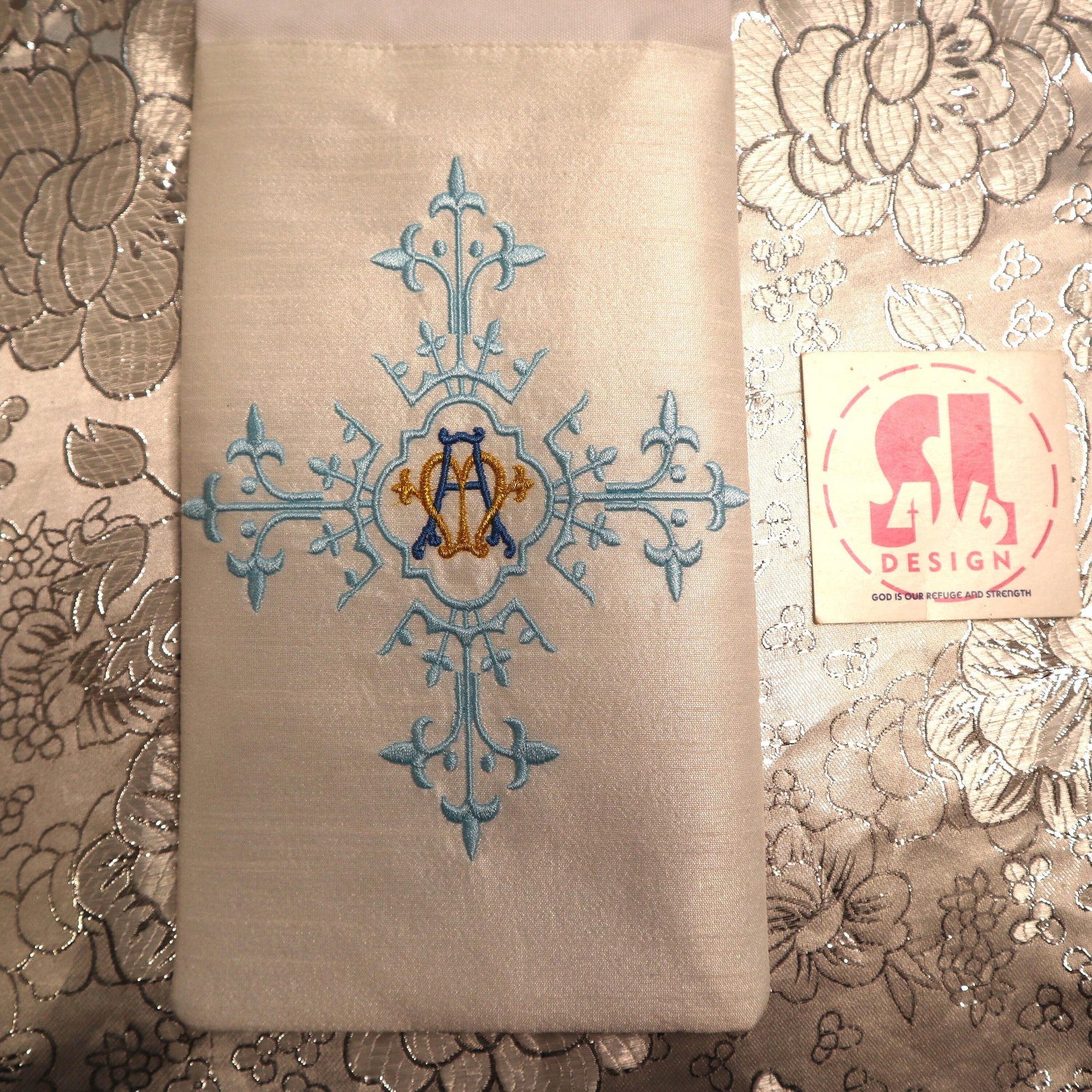 our stoles come with 3 embroidered designs that can be customized upon request.
