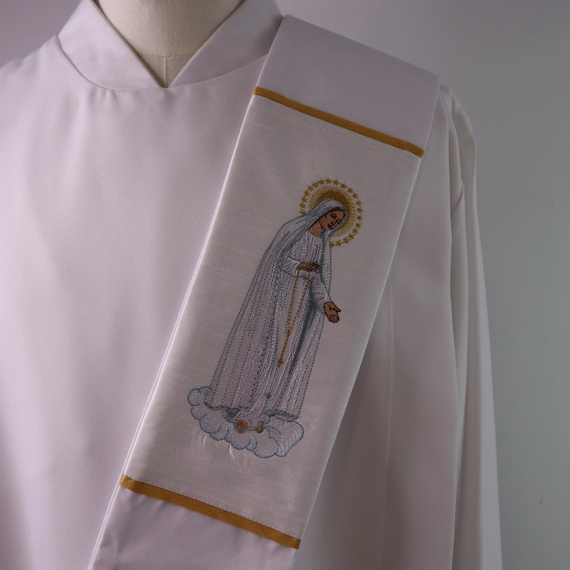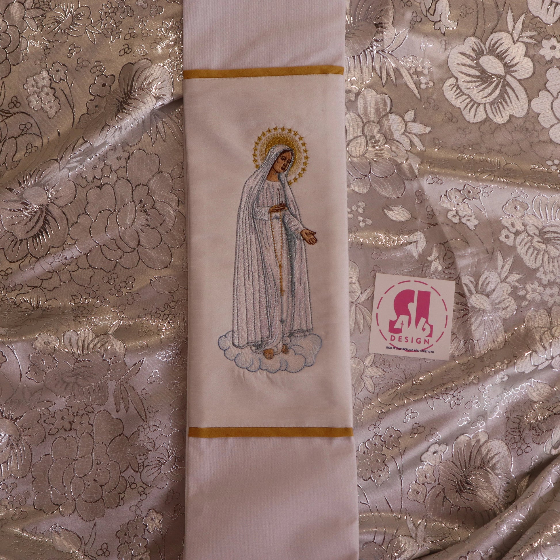 our stoles come with 3 embroidered designs that can be customized upon request.