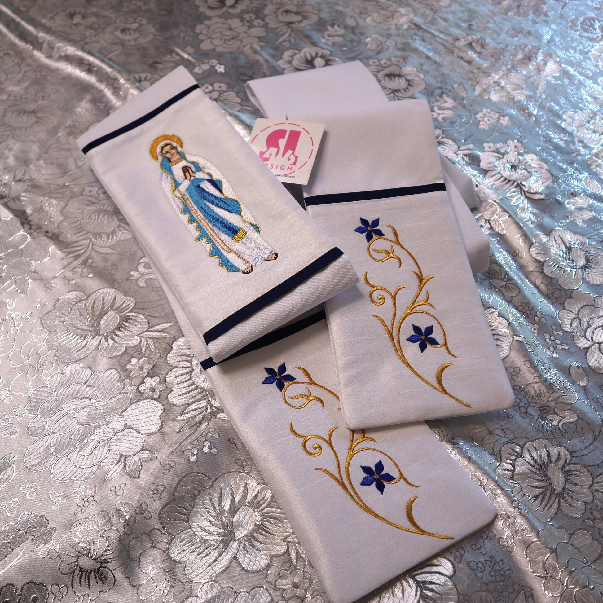 Virgin Our Lady of Lourdes embroidered 12" long stole