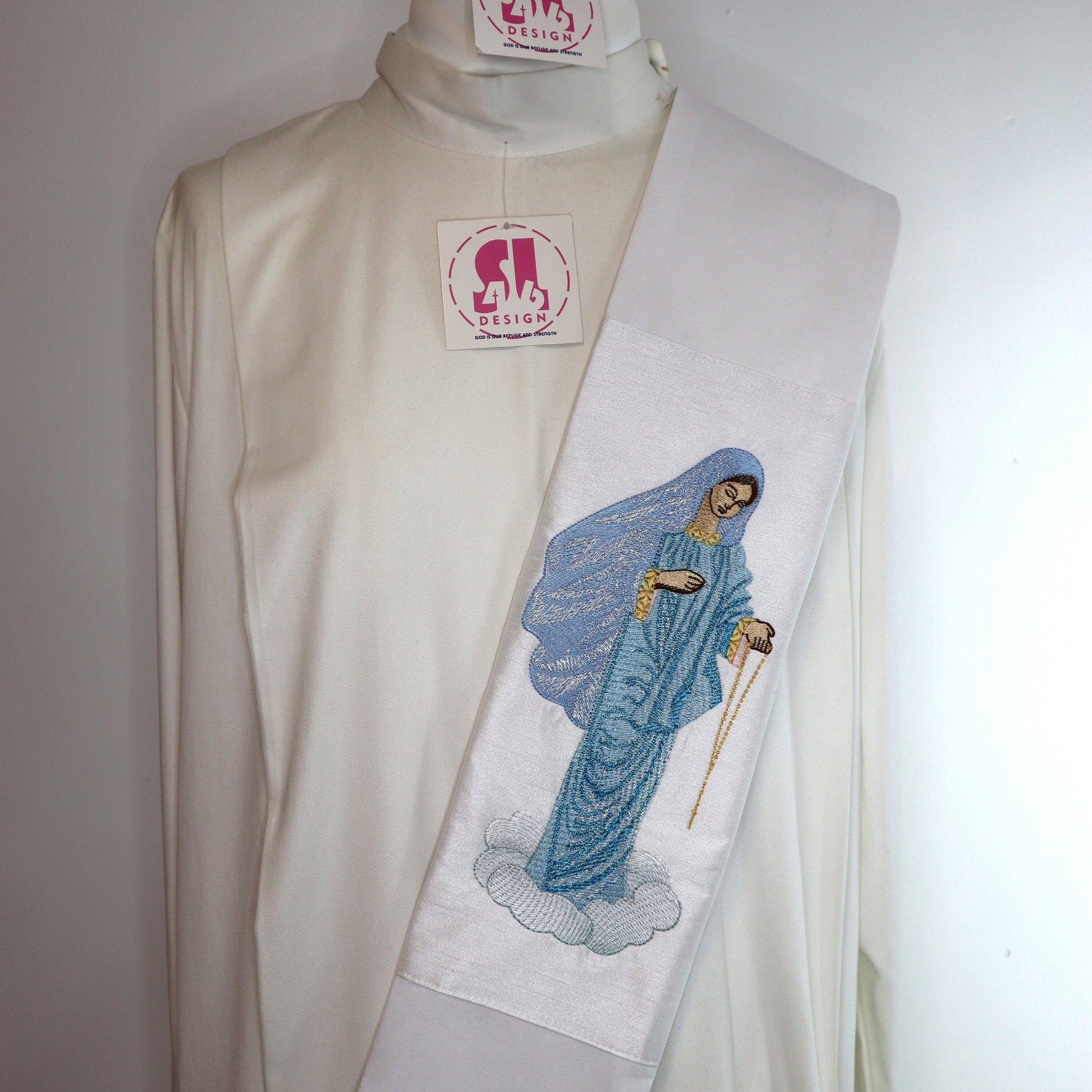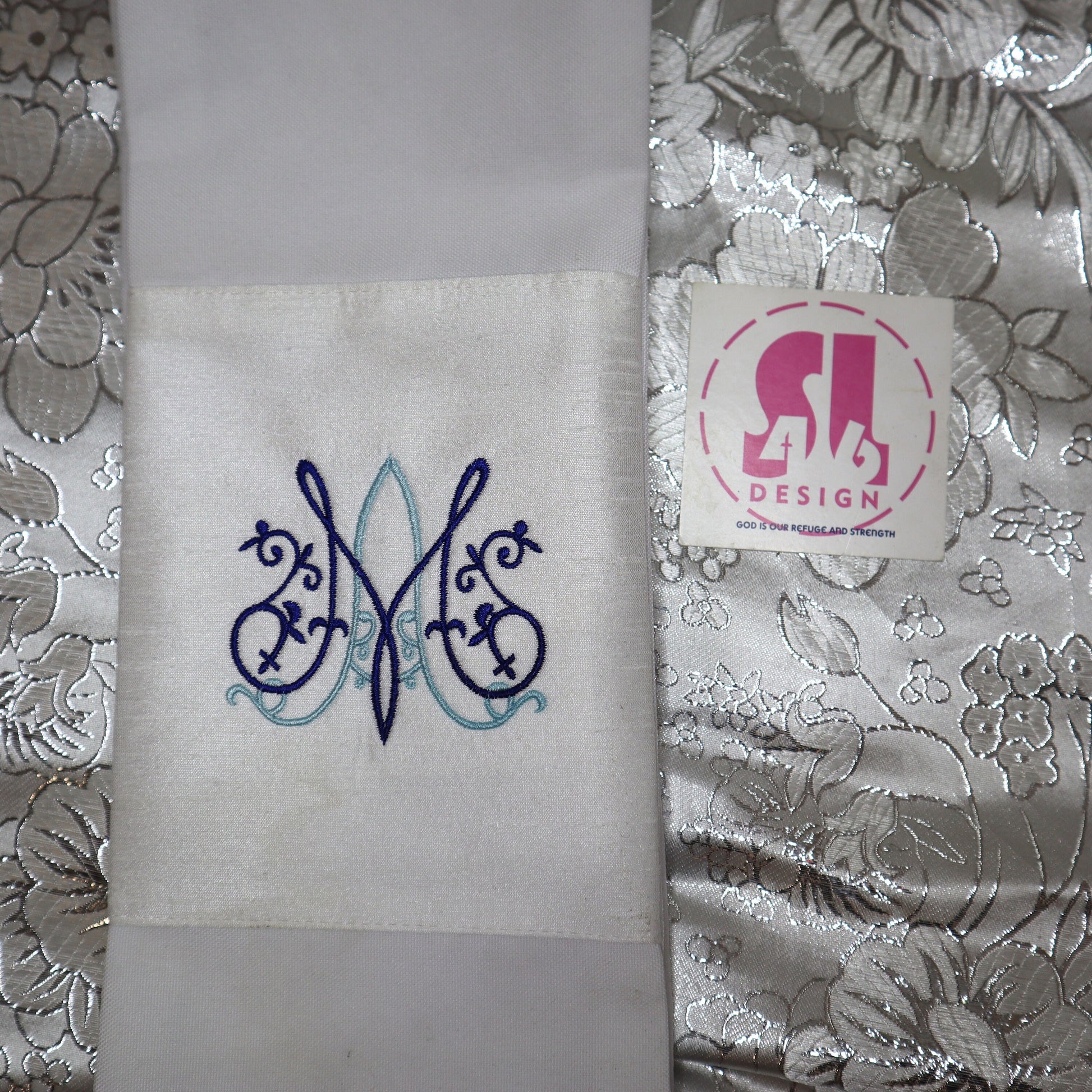 Materials: high quality cotton blend, the designs are embroidered in a accent fabric to give the piece an elegant touch, and the inside is a cotton blend that helps keep the stole in place.