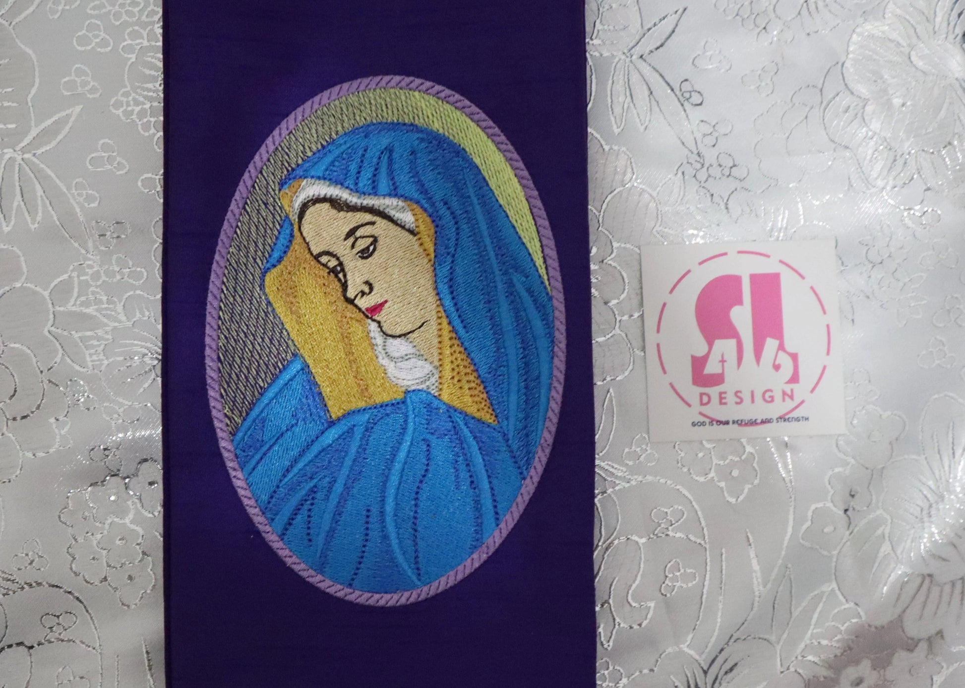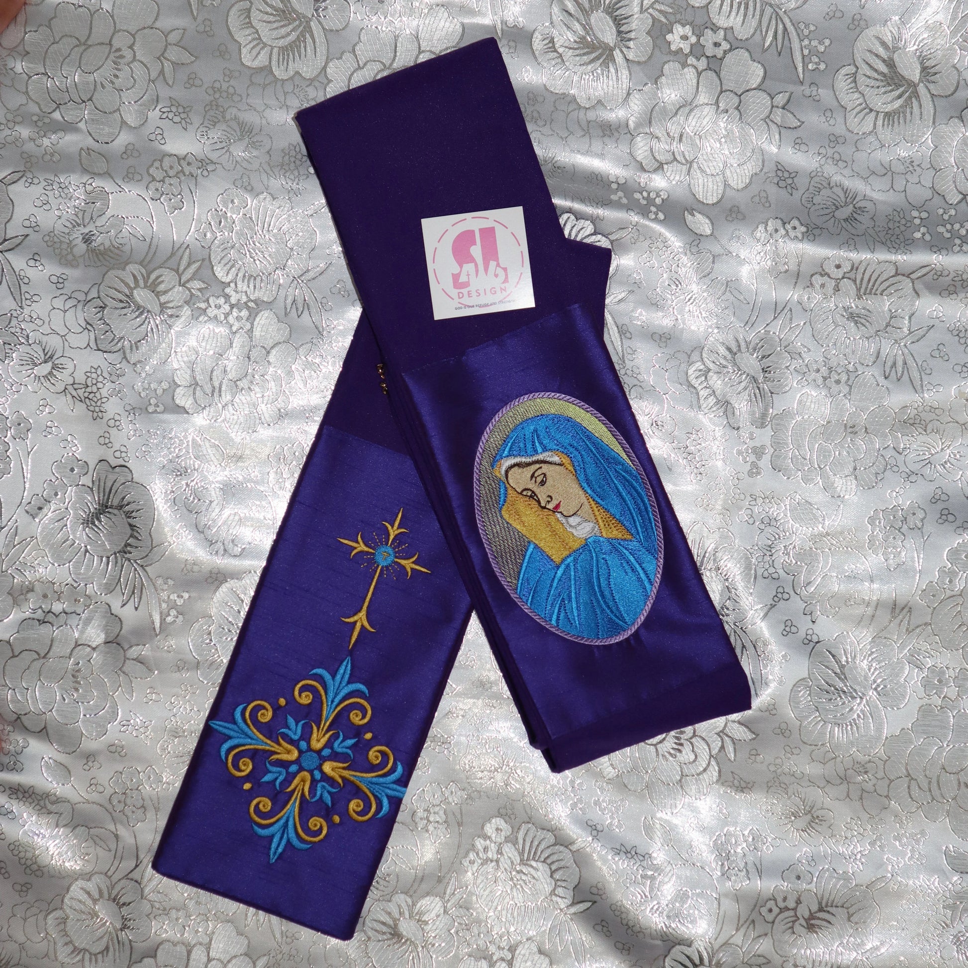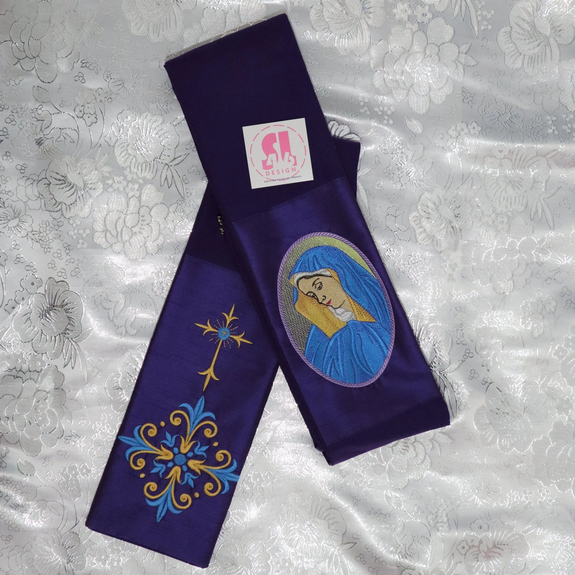 our stoles come with 3 embroidered designs that can be customized upon request.