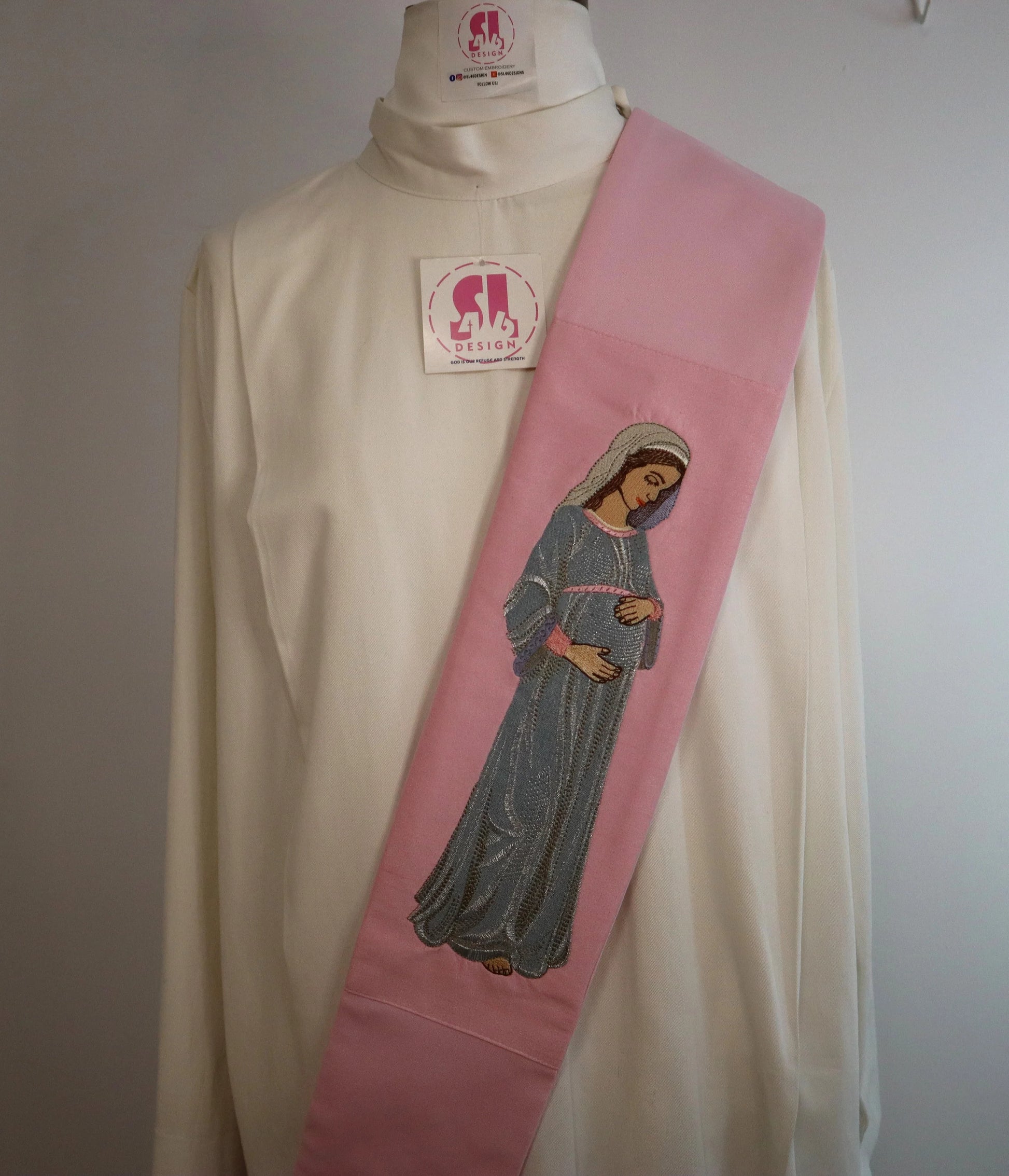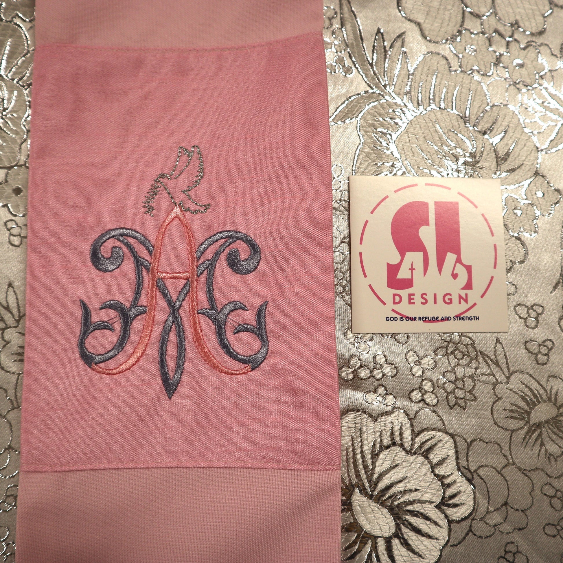 our stoles come with 3 embroidered designs that can be customized upon request.