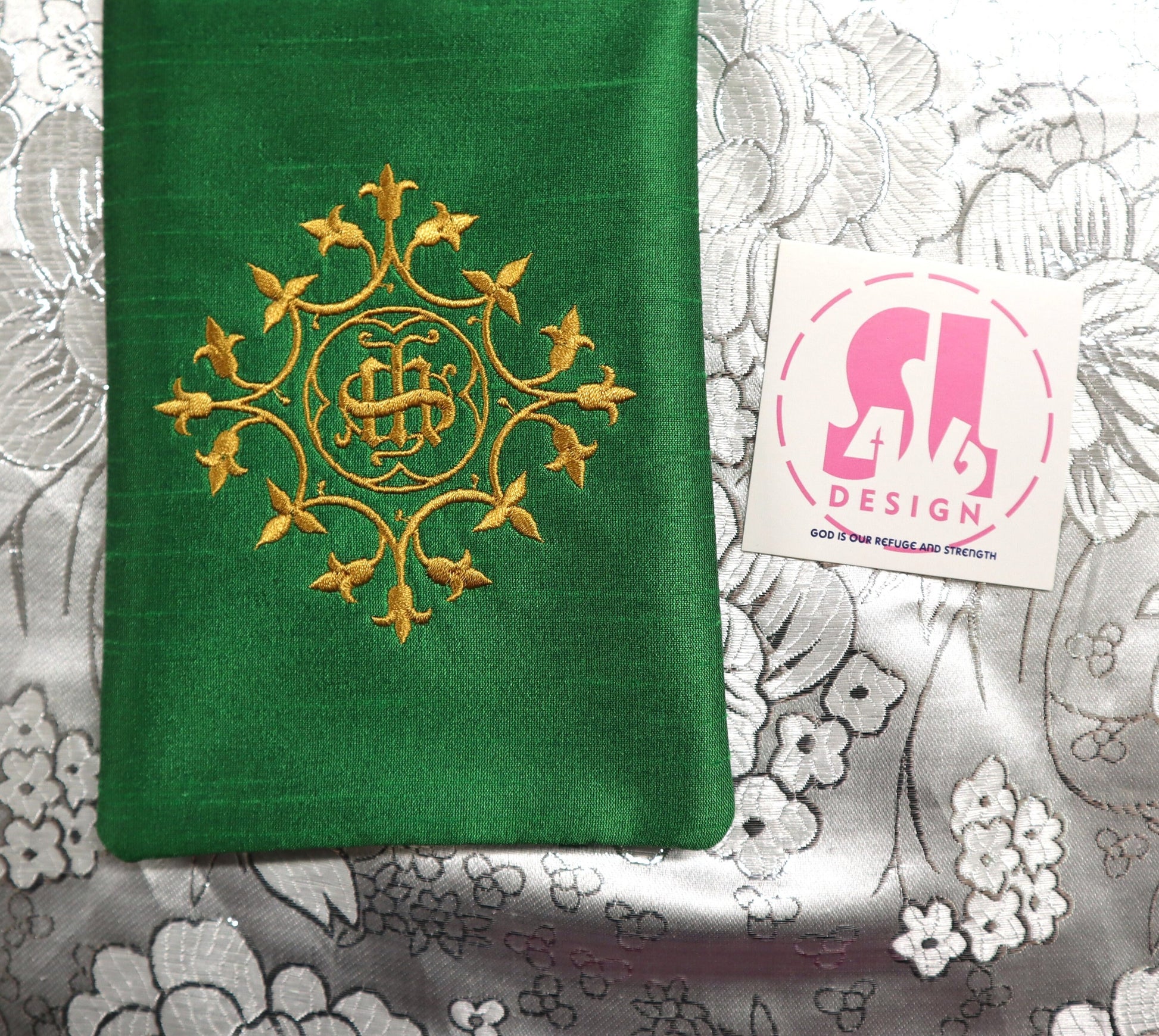 our stoles come with 3 embroidered designs that can be customized upon request.