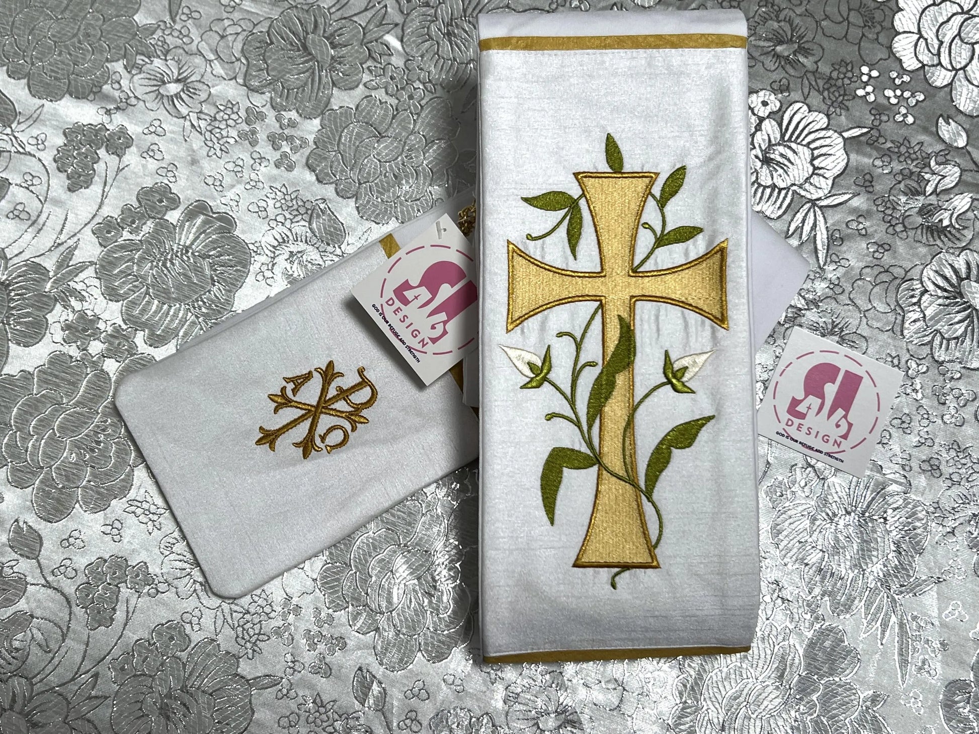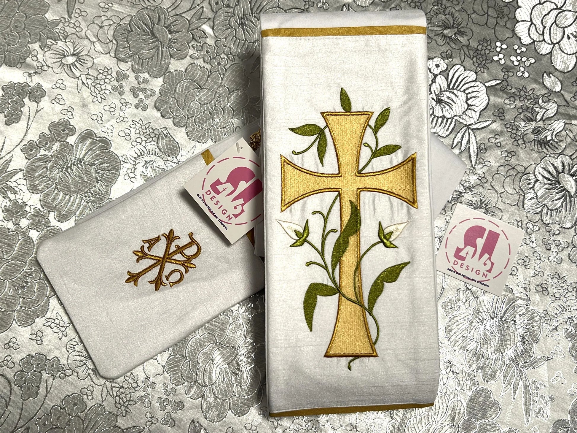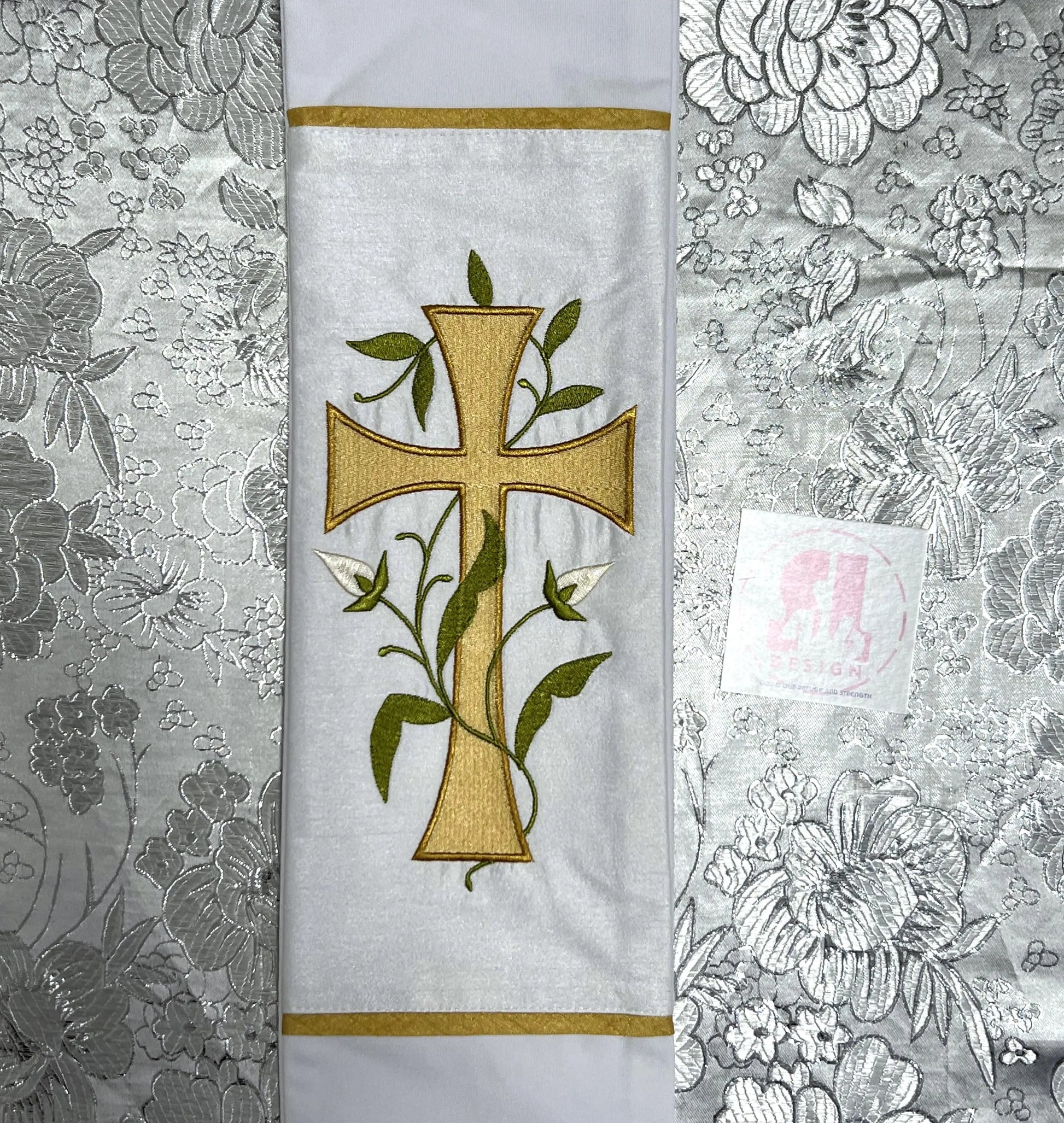 our stoles come with 3 embroidered designs that can be customized upon request.