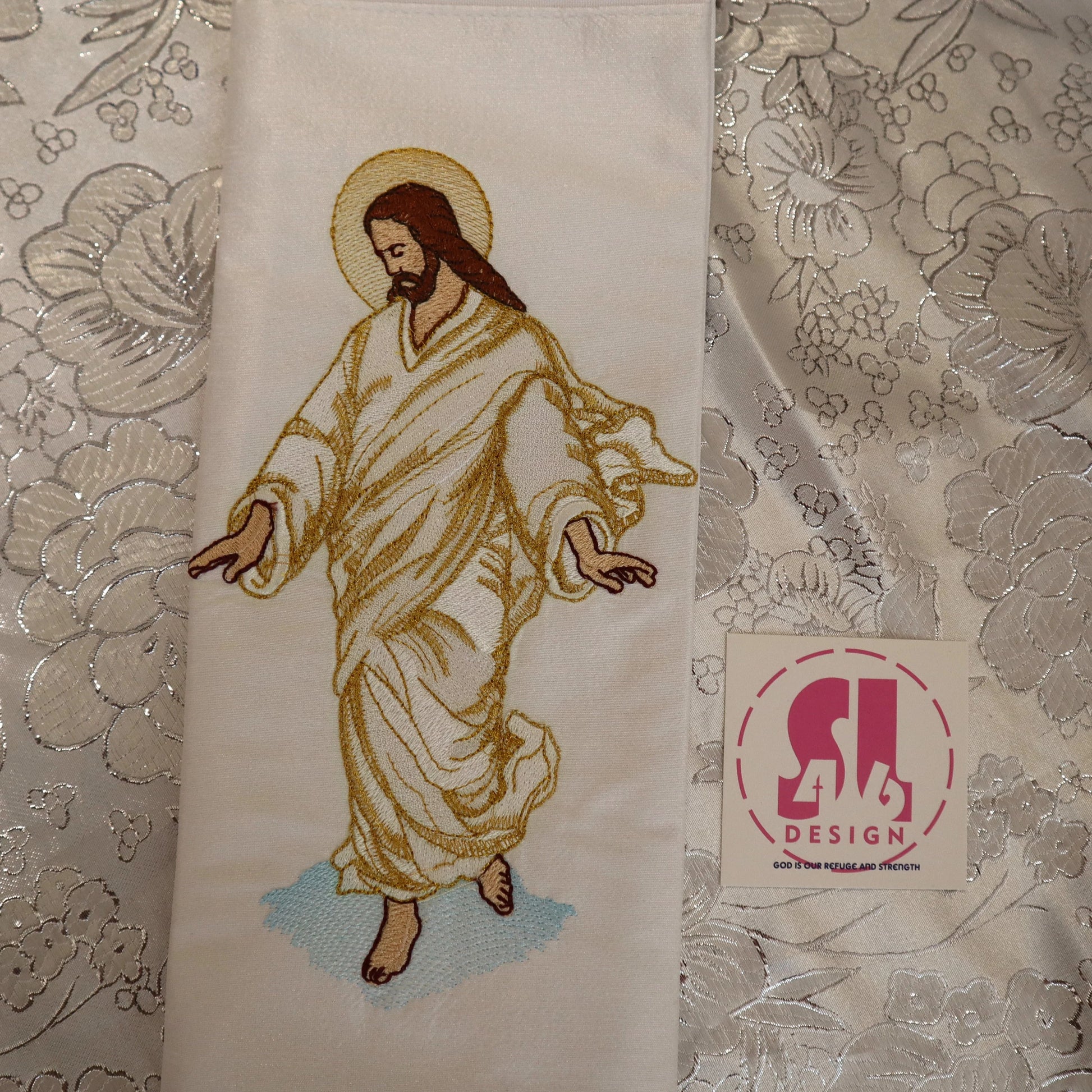 This design has a delicate lace embroidered design to give the piece a elegant touch.
