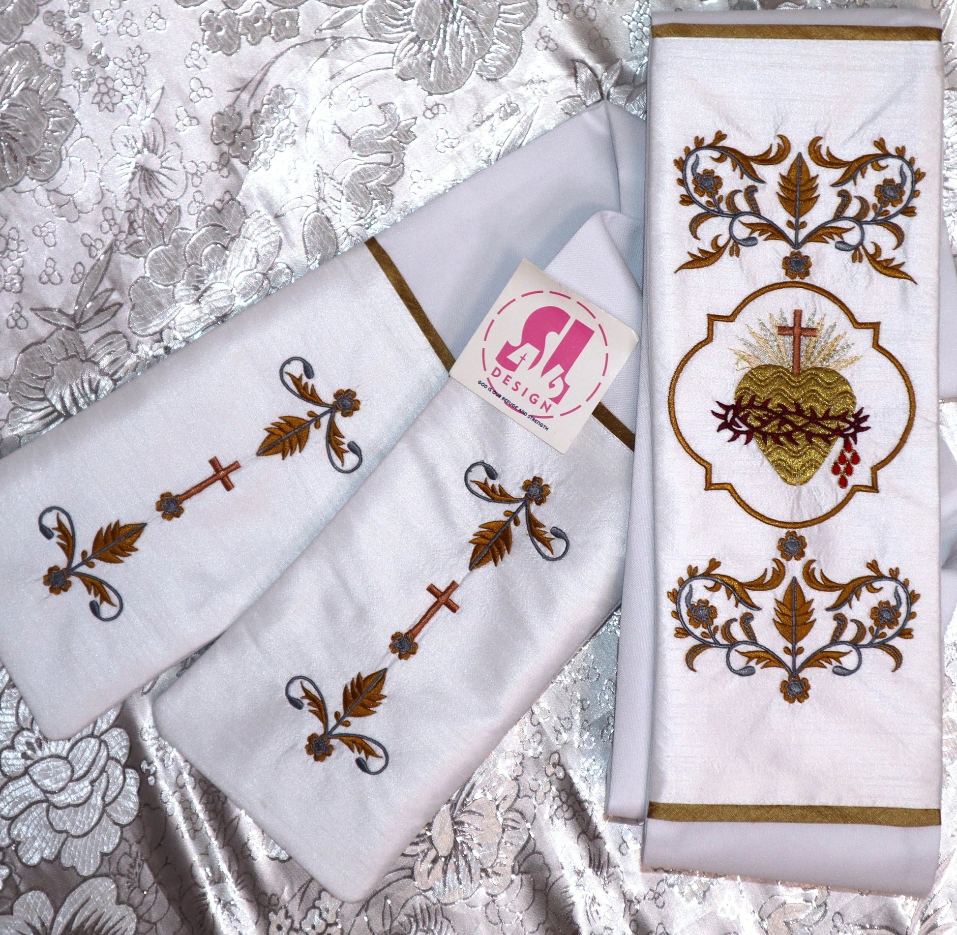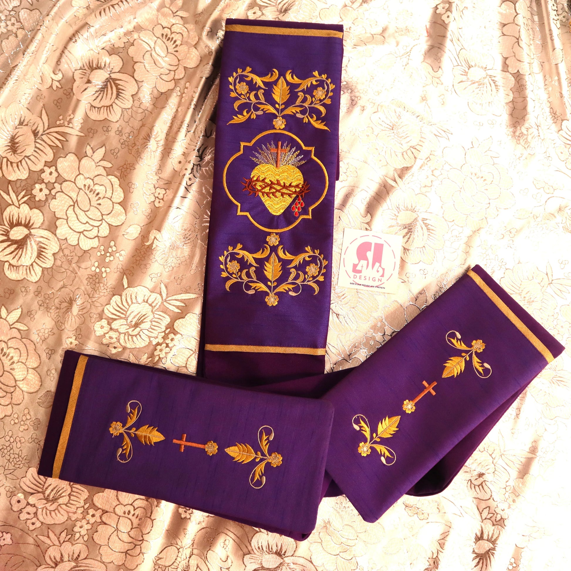 our stoles come with 3 embroidered pieces that can be customized upon request.