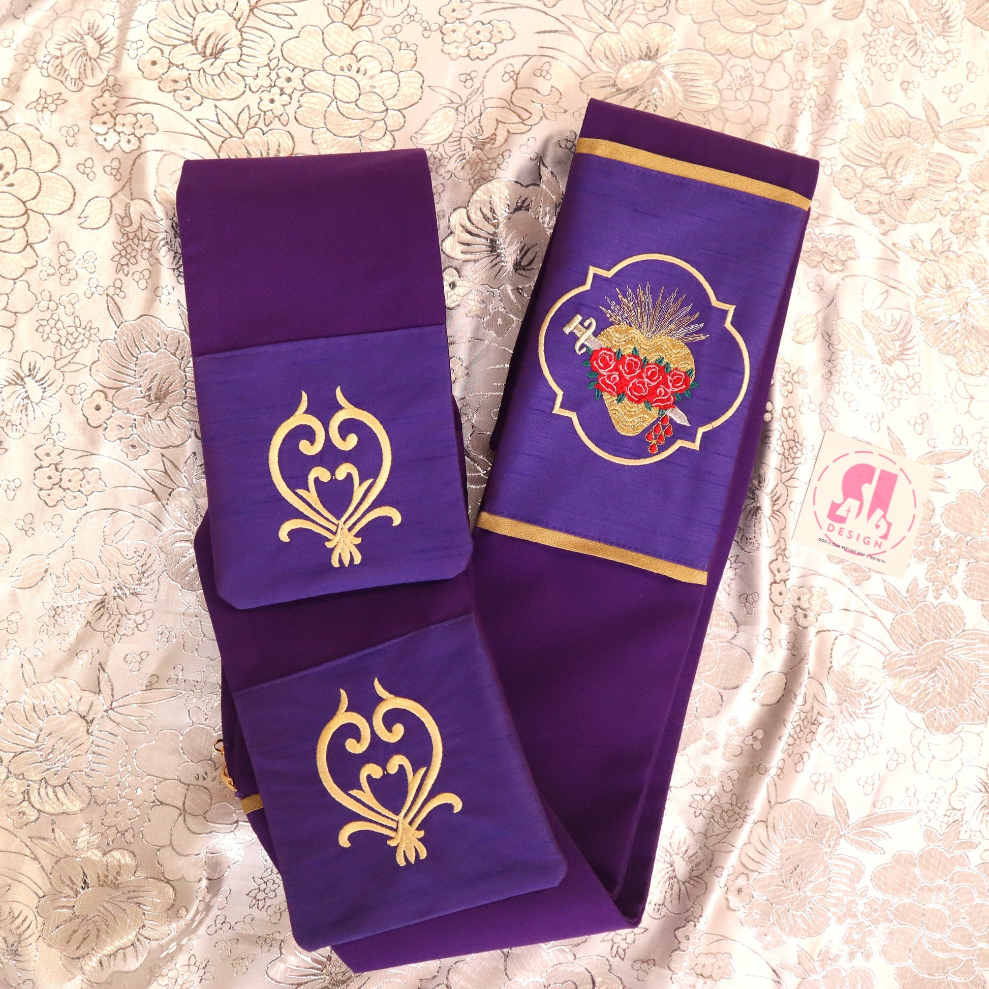 Materials: high quality satin and the inside is a cotton blend that helps keep the stole in place.