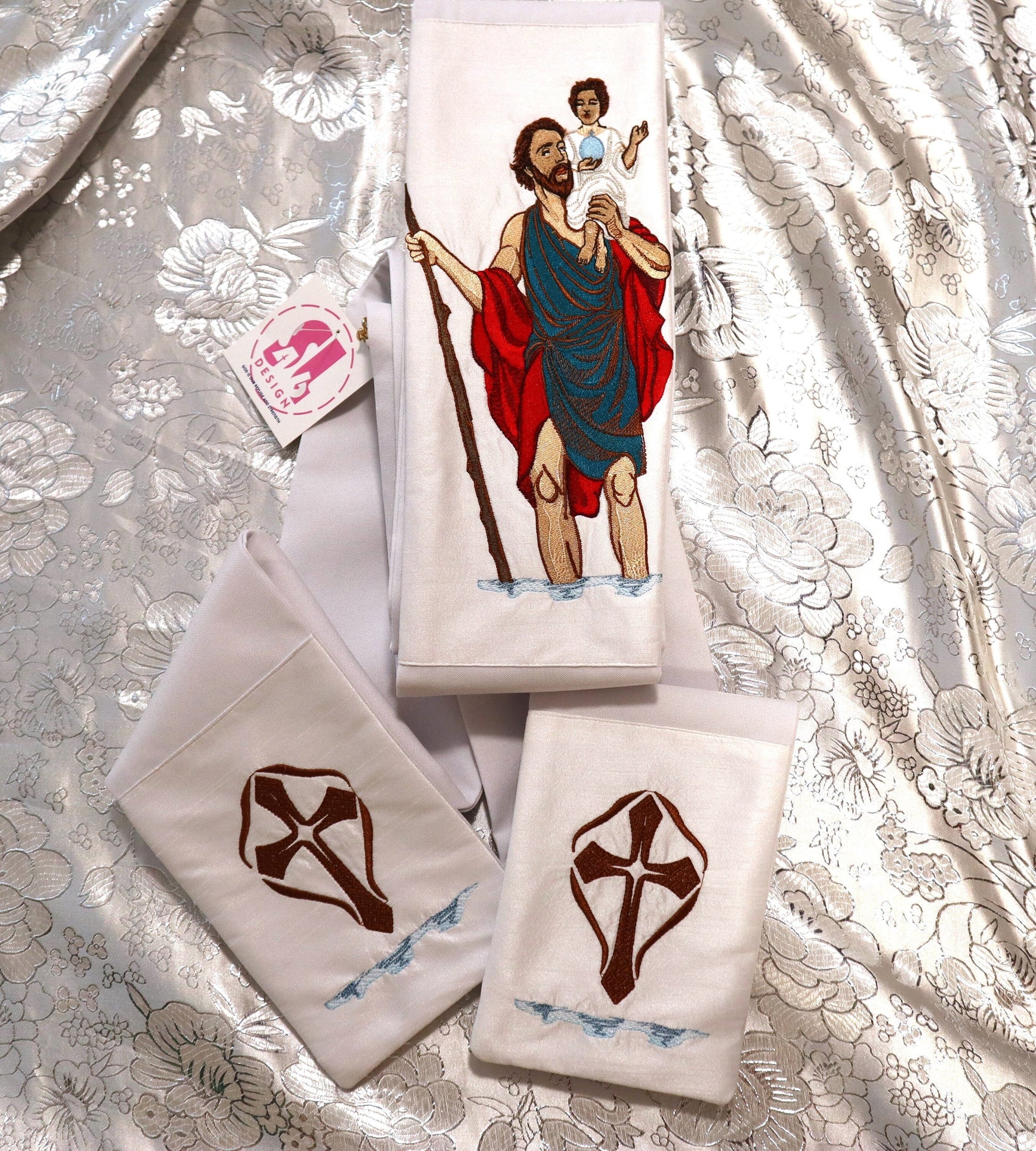 our stoles come with 3 embroidered designs that can be customized upon request.