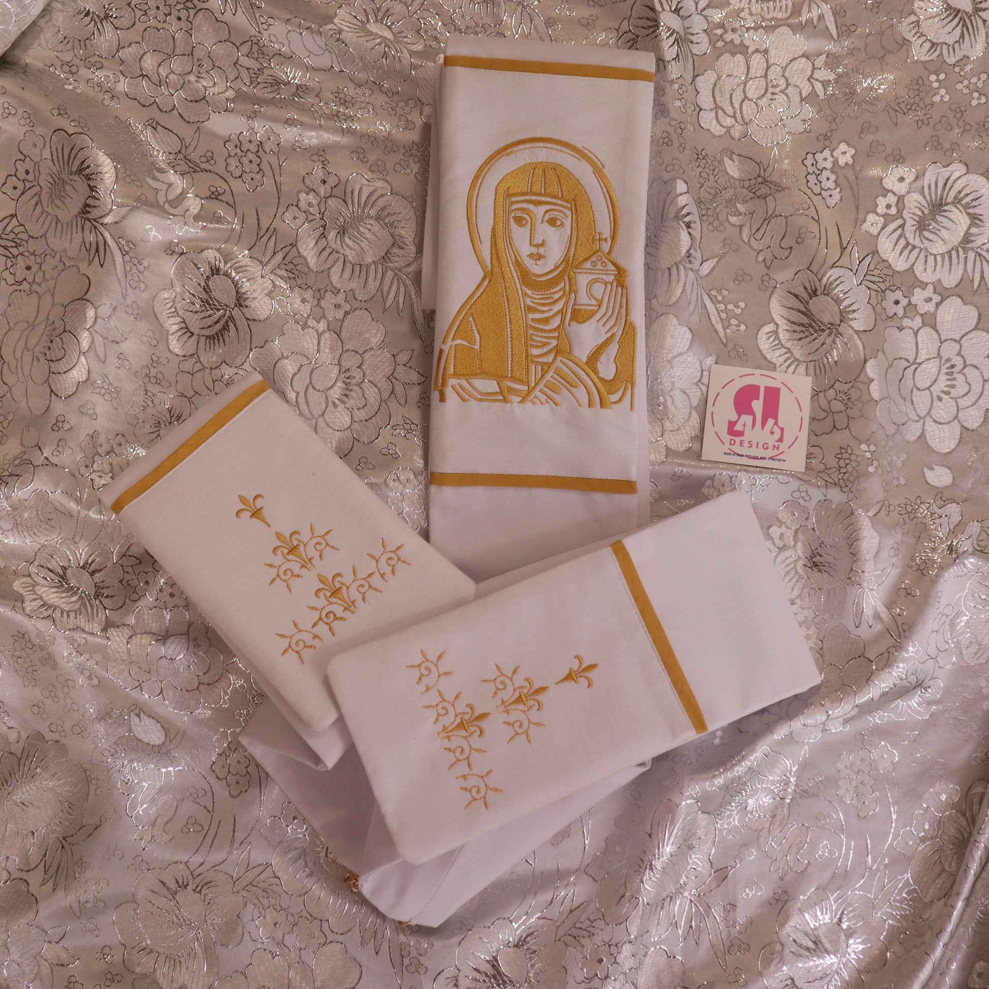 our stoles come with 3 embroidered designs that can be customized upon request