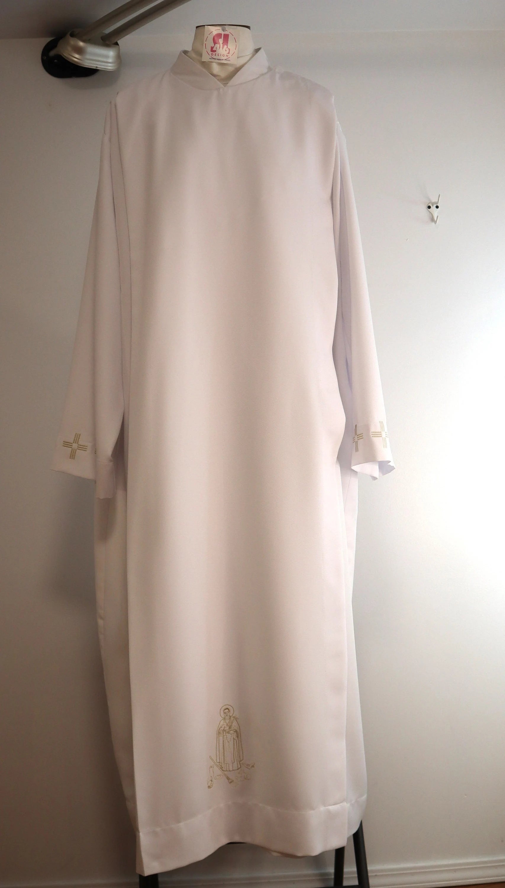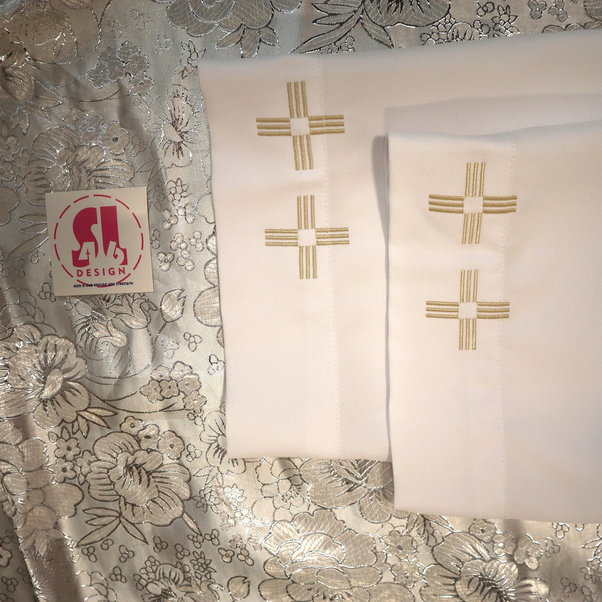 Custom made to fit. - there is embroidery designs on the front on the bottom front and back. And both sleeves. All embroidery are on white color to make them easy to wear all year long. But they can be changed if requested.