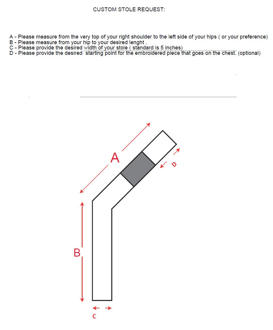 our stoles come with 3 embroidered designs that can be customized upon request.