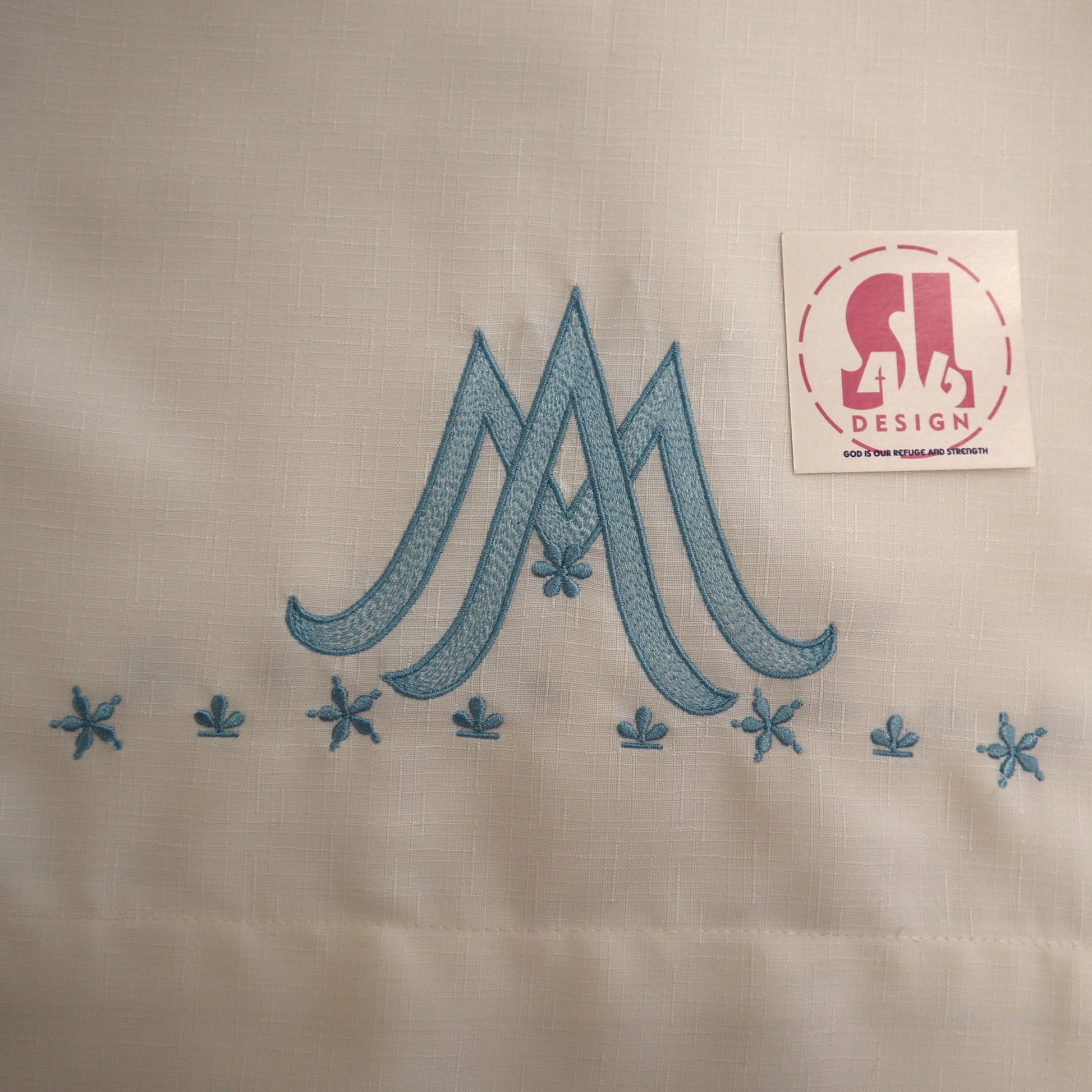 Custom made to fit. - there is embroidery designs on the front on the bottom front and back. And both sleeves. All embroidery are on white color to make them easy to wear all year long. But they can be changed if requested.